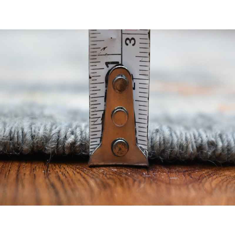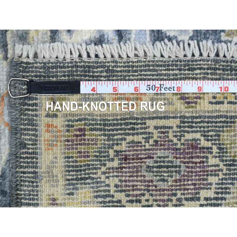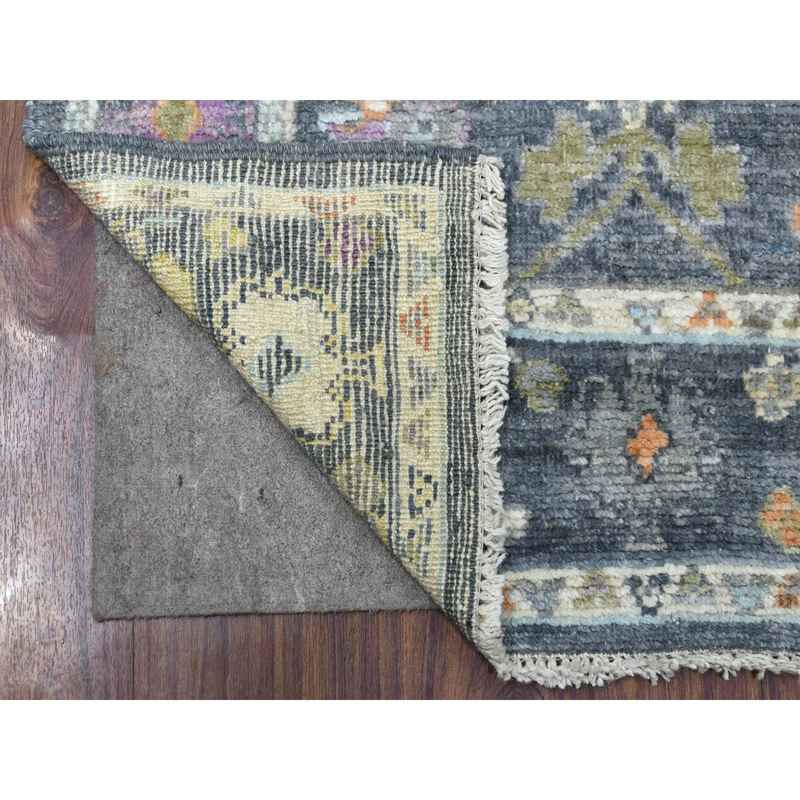 3’3″x10′ Hand Knotted Charcoal Black Angora Oushak with Colorful Motifs Organic Wool Oriental Wide Runner Rug Sh68897