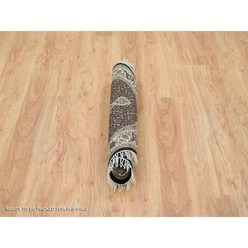 3’3″x3’3″ Obsidian Black, Tabriz Mahi with Fish Medallion Design, 175 KPSI, Hand Knotted, Pure Wool, Unique Round Oriental Rug Sh65783
