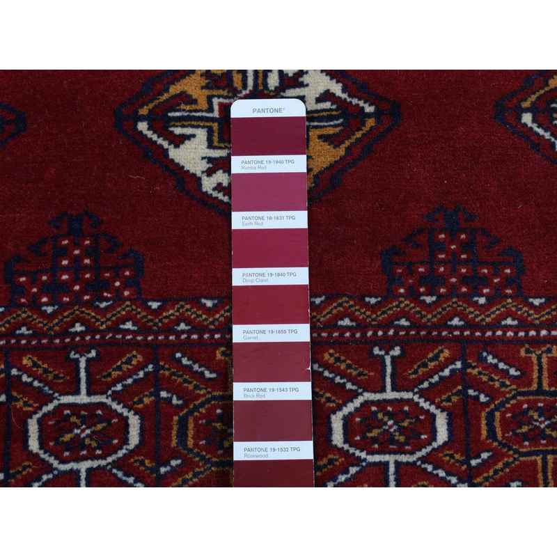 3’3″x4’2″ Sangria Red, Persian Turkoman Bokara with Geometric Design, Pure Wool, Hand Knotted Oriental Rug Sh87684