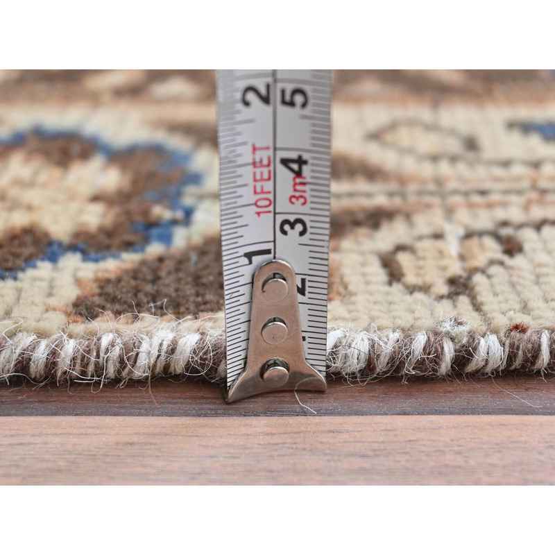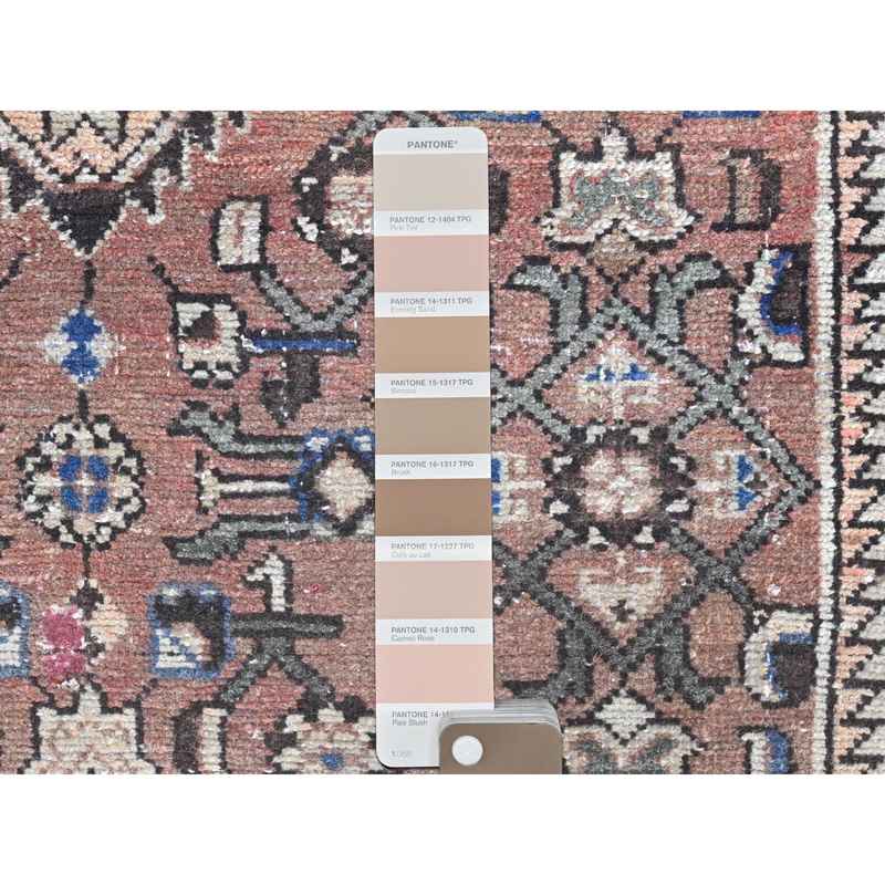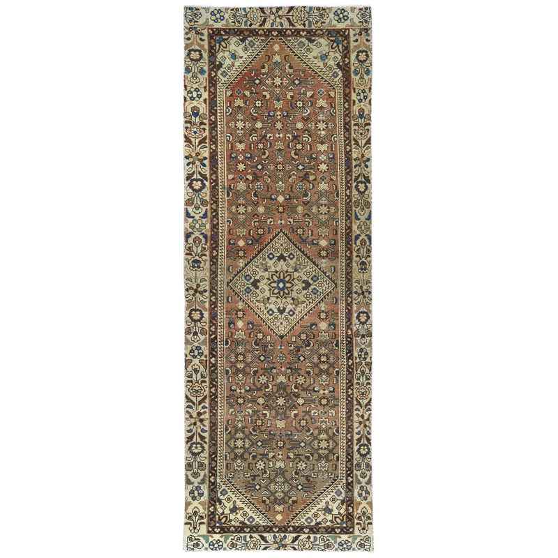3’4″x10′ Almond Brown, Vintage Persian Hamadan with Geometric Medallion, Pure Wool Hand Knotted, Clean, Cropped Thin, Wide Runner Oriental Rug Sh81851
