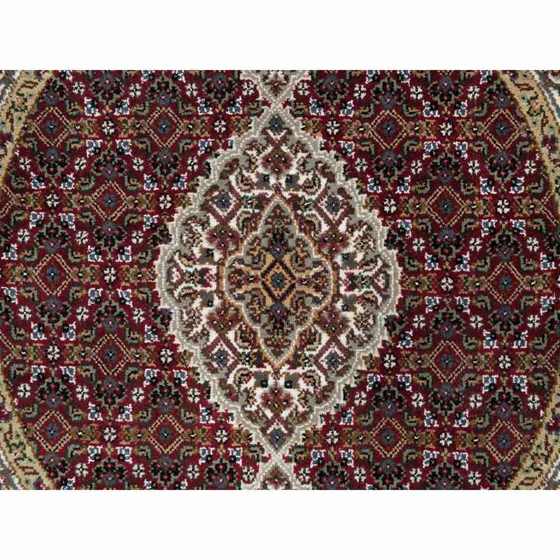 3’4″x3’4″ Mahogany Red, Tabriz Mahi with Fish Medallion Design, Pure Wool, 175 KPSI, Hand Knotted, Round, Oriental Rug Sh65093