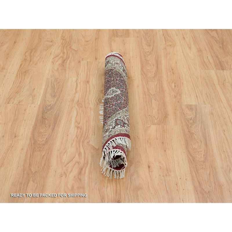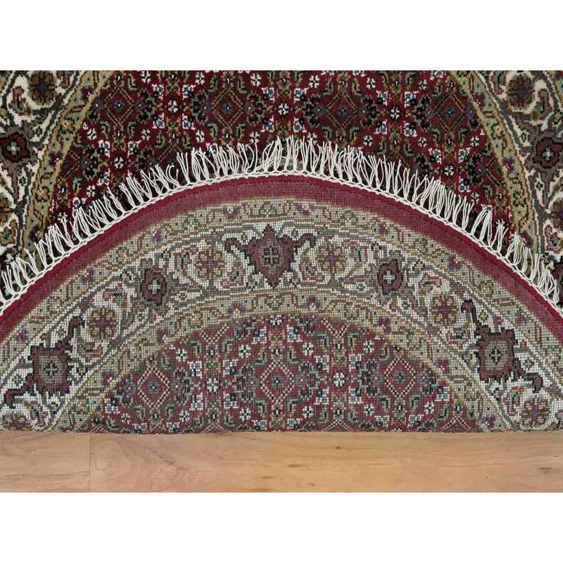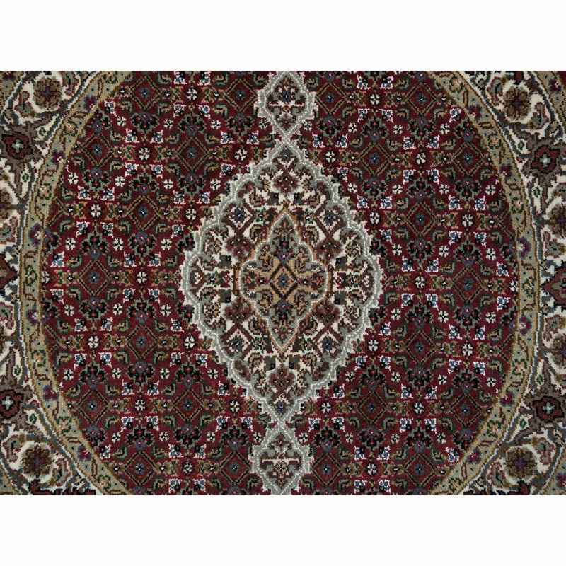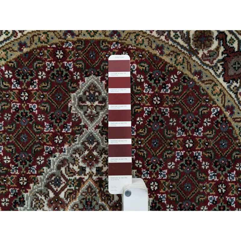 3’4″x3’4″ Mahogany Red with Porcelain Ivory, Tabriz Mahi with Fish Medallion Design, Hand Knotted, 175 KPSI, Pure Wool, Round Oriental Rug Sh65785