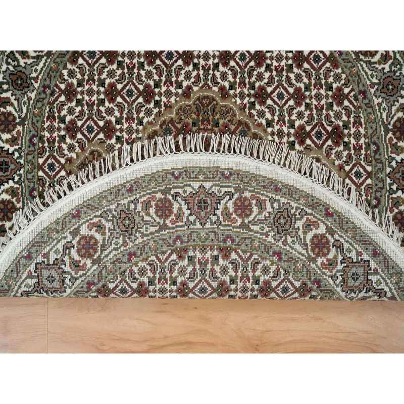 3’4″x3’4″ Porcelain White, 175 KPSI, Pure Wool, Tabriz Mahi with Fish Medallion Design, Hand Knotted, Round Oriental Rug Sh65787