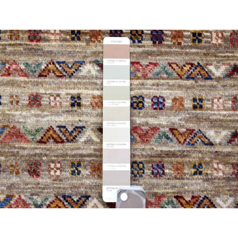 3’4″x9’10” Walnut Brown Hand Knotted Afghan Super Kazak with Khorjin Design, Natural Dyes, Pure Wool Runner Oriental Rug Sh72850