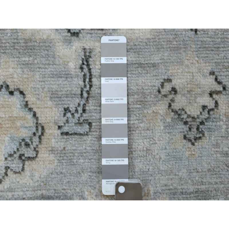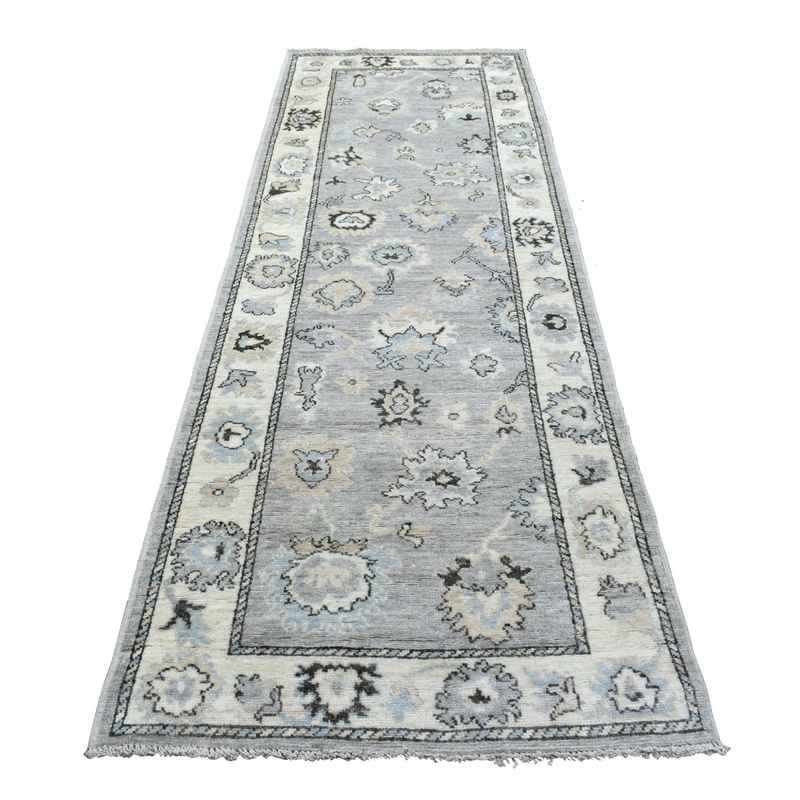 3’5″x10’2″ Afghan Angora Oushak with Floral Motifs Extra Soft Wool Hand Knotted Gunmetal Gray Oriental Wide Runner Rug Sh68967