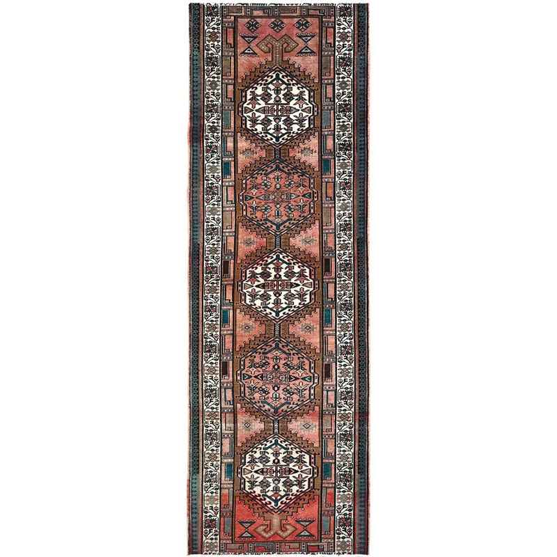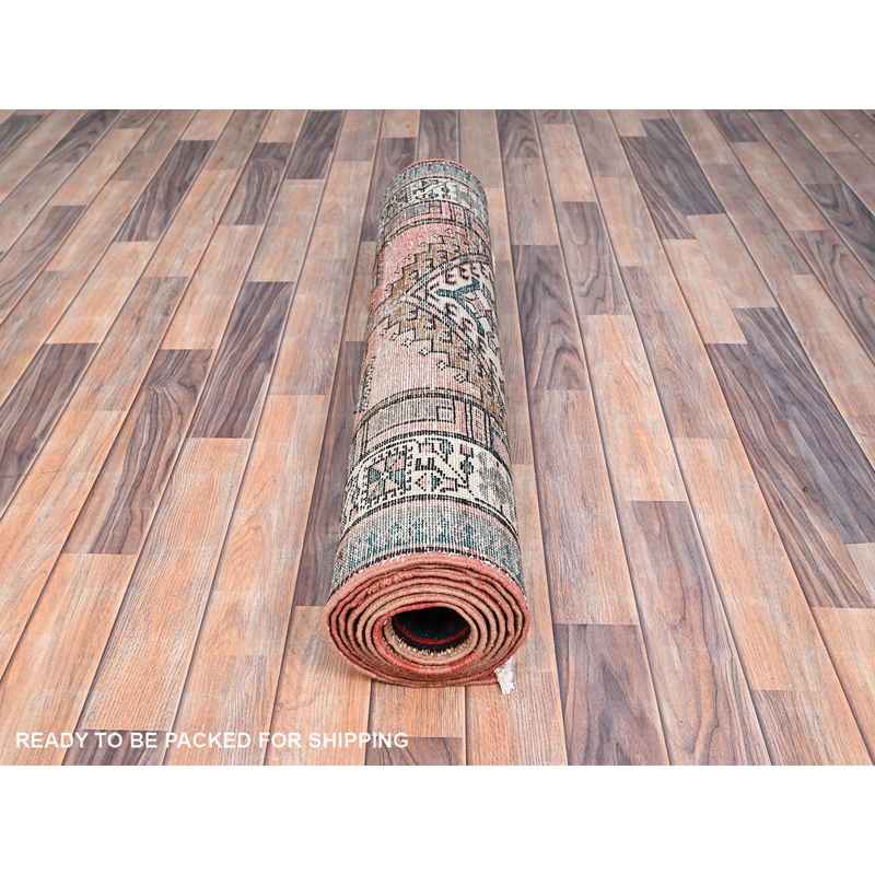 3’5″x10’2″ Pastry Shell Brown, Evenly Worn Sheared Low Distressed, Semi Antique North West Persian, Hand Knotted, Organic Wool, Sides and Ends Professionally Secured, Cleaned, Wide and Long Runner, Oriental Rug Sh85988