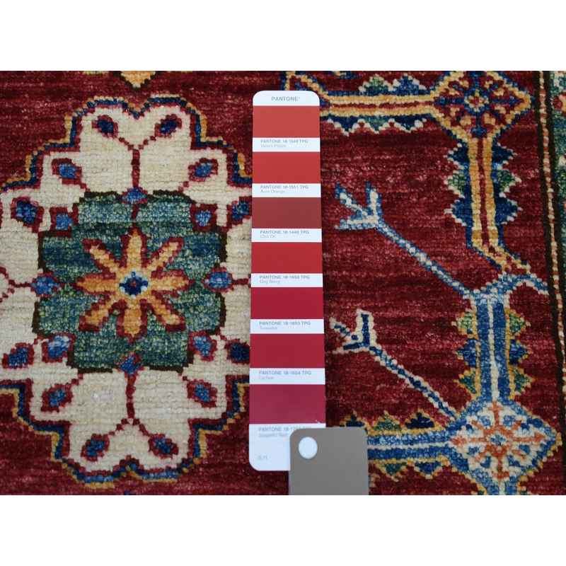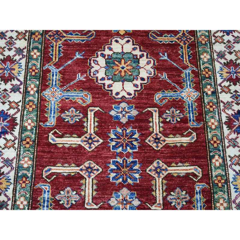 3’5″x19’3″ Red Super Kazak Geometric Design Hand-Knotted XL Runner Oriental Rug Sh50419