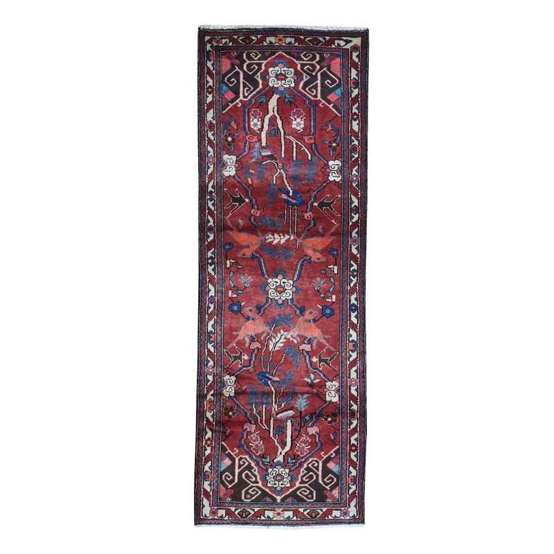3’5″x9’7″ Red Natural Wool New Persian Bakhtiar with Deer Figurines Hand Knotted Runner Oriental Rug Sh59860