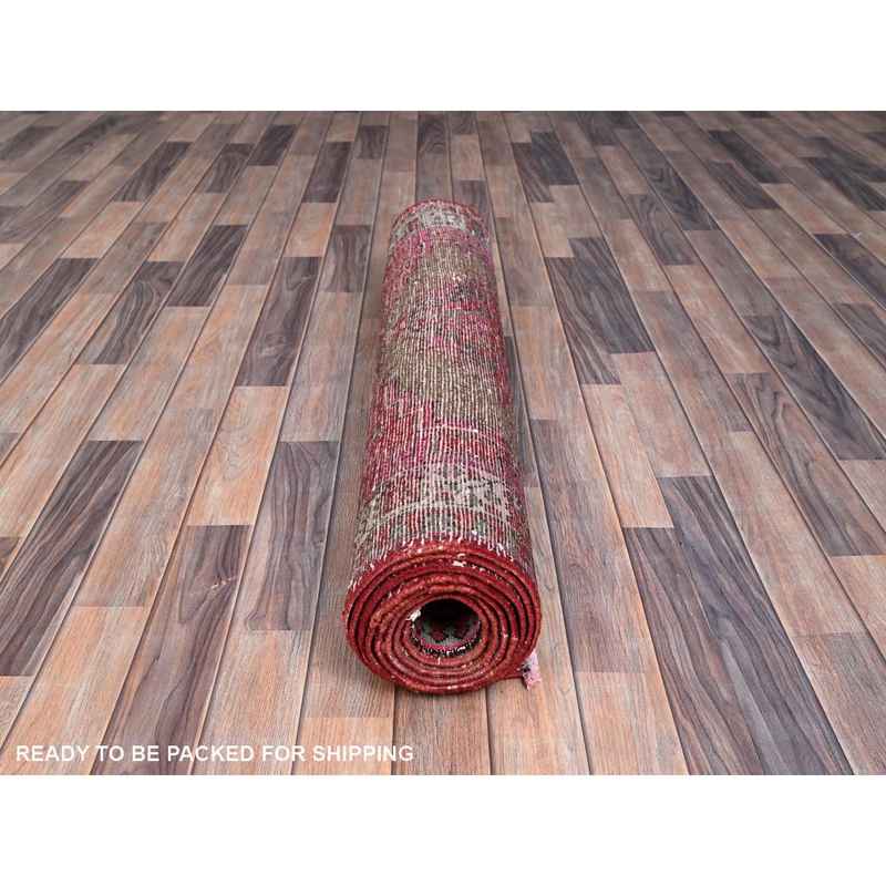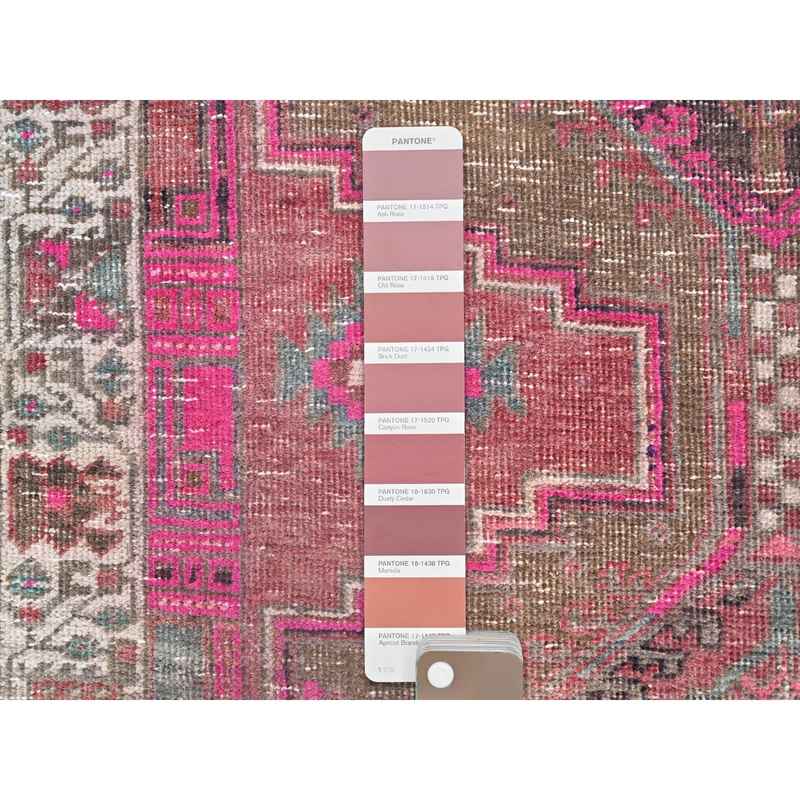 3’6″x10’9″ Multicolored, Sheared Low Distressed Look, Cropped Thin, Evenly Worn, Soft Wool, Hand Knotted, Persian Heriz, Sides and Ends Professionally Secured, Antique Runner Oriental Rug Sh86664
