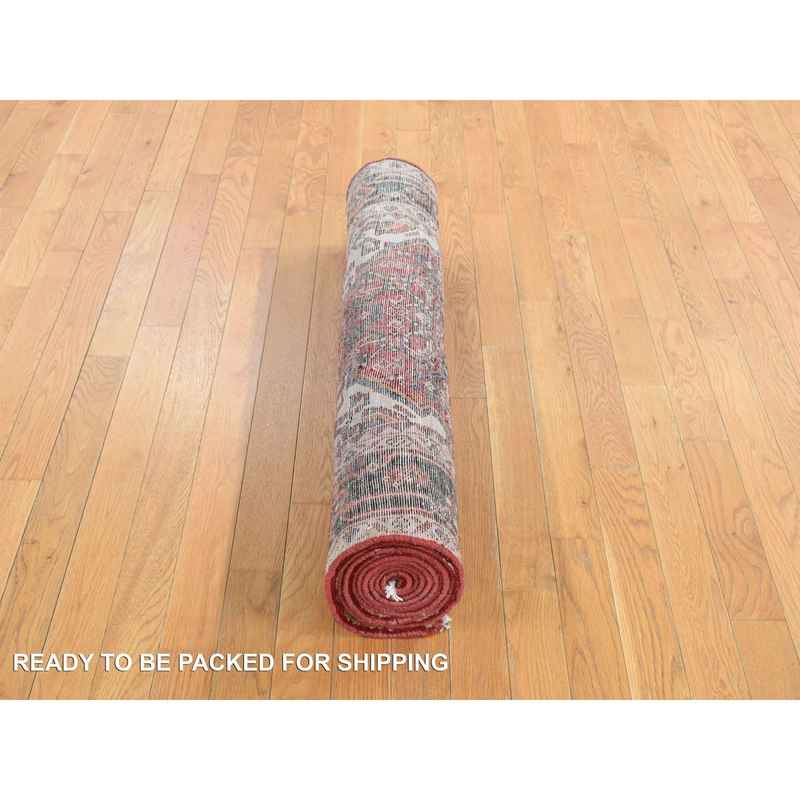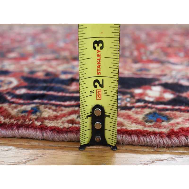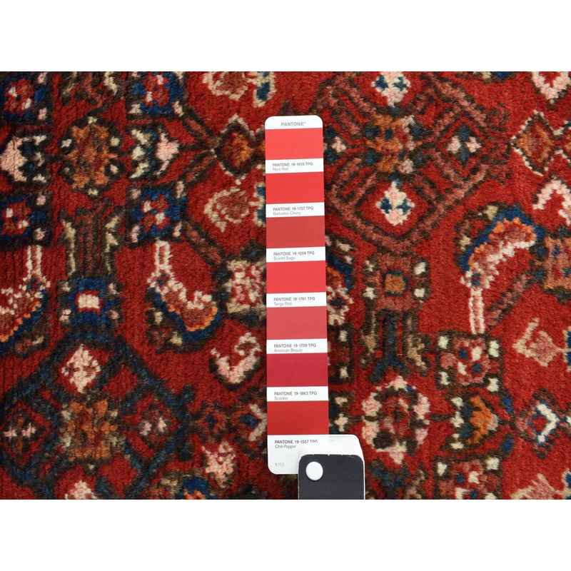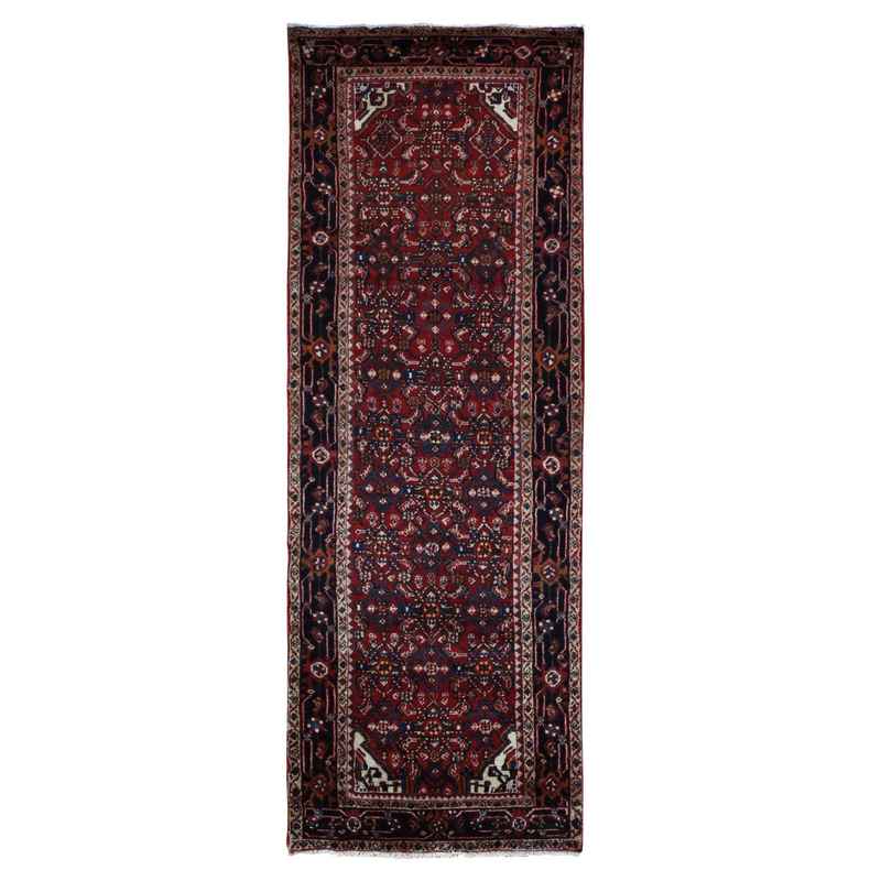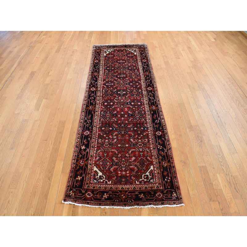 3’7″x10’2″ Fire Brick Red, Semi Antique Persian Hussainabad, Full Pile and Clean, 100% Wool, Hand Knotted, Wide Runner, Village Oriental Rug Sh78072