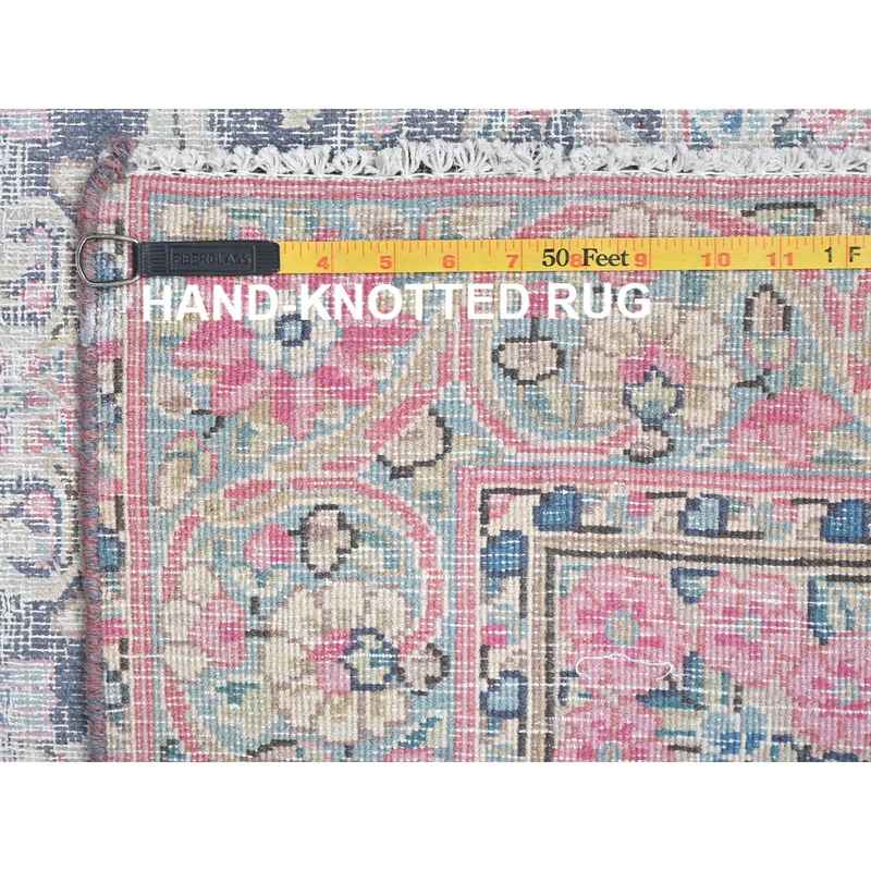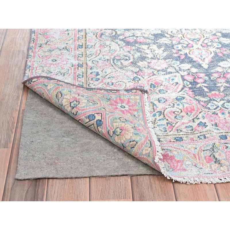 3’7″x5’9″ Navy Blue, Hand Knotted Old Persian Kerman, Cropped Thin Distressed Look Worn Wool, Oriental Rug Sh81947