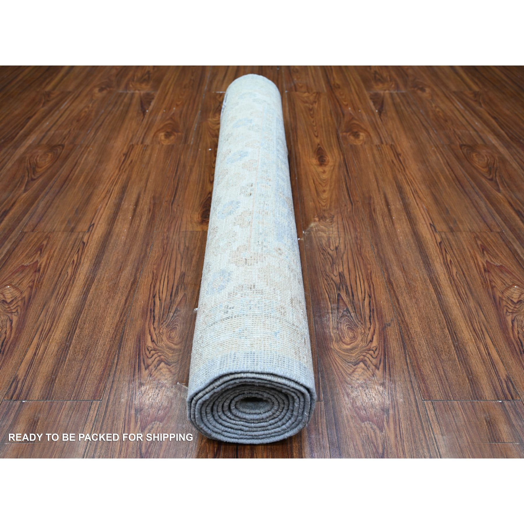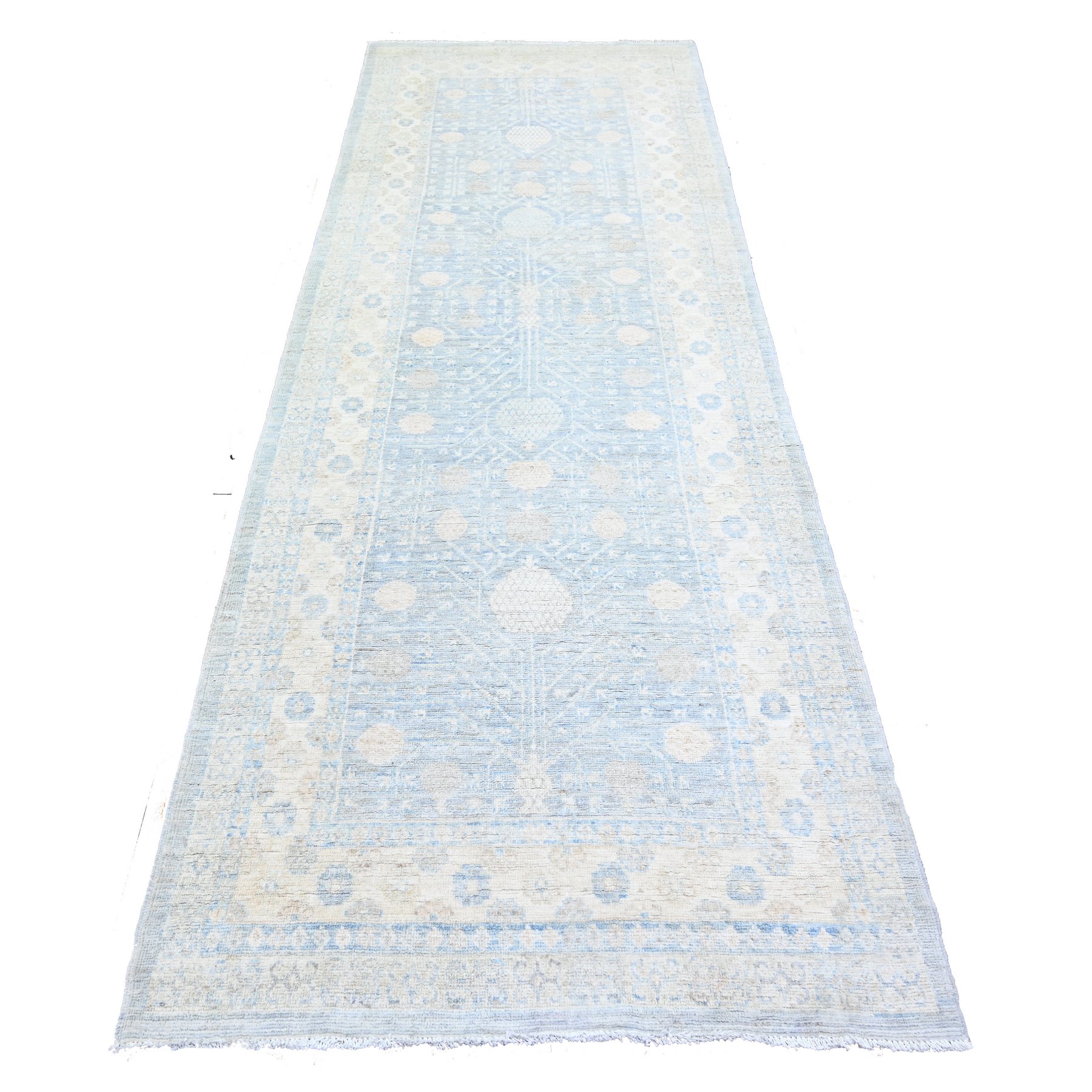 3’8″x10’2″ Glaucous Gray, High Grade Wool, Hand Knotted, Washed Out Khotan and Samarkand Inspired Pomegranate Design, Runner Oriental Rug Sh74787