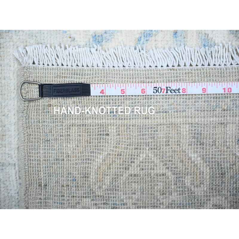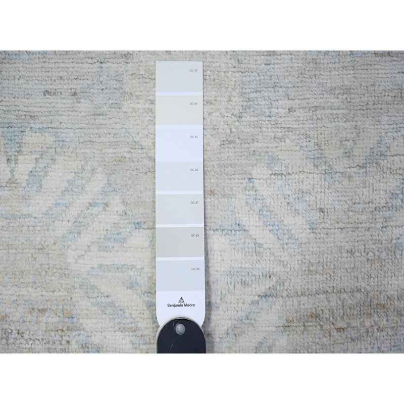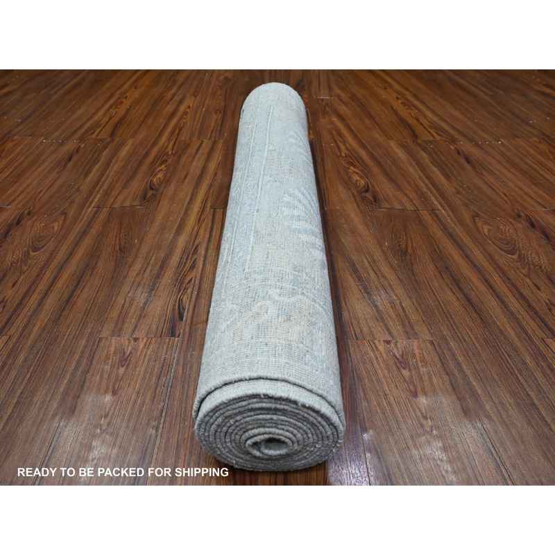 3’8″x15′ Silver Gray, White Wash Peshawar, Organic Wool, Hand Knotted, Vegetables Dyes, XL Runner Oriental Rug sh88419