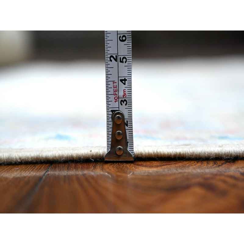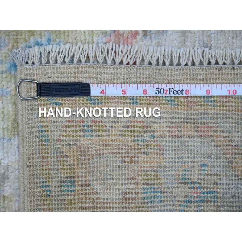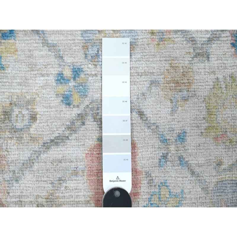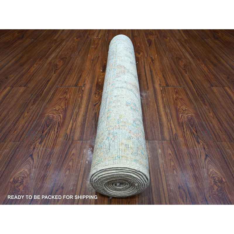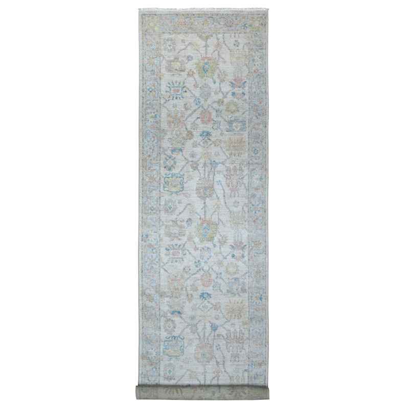 3’8″x15’9″ Gainsboro Gray, Natural Dyes, Wool Weft, Hand Knotted, Village Floral Medallions Design, Wide Gallery Angora Oushak, Runner Oriental Rug Sh89030