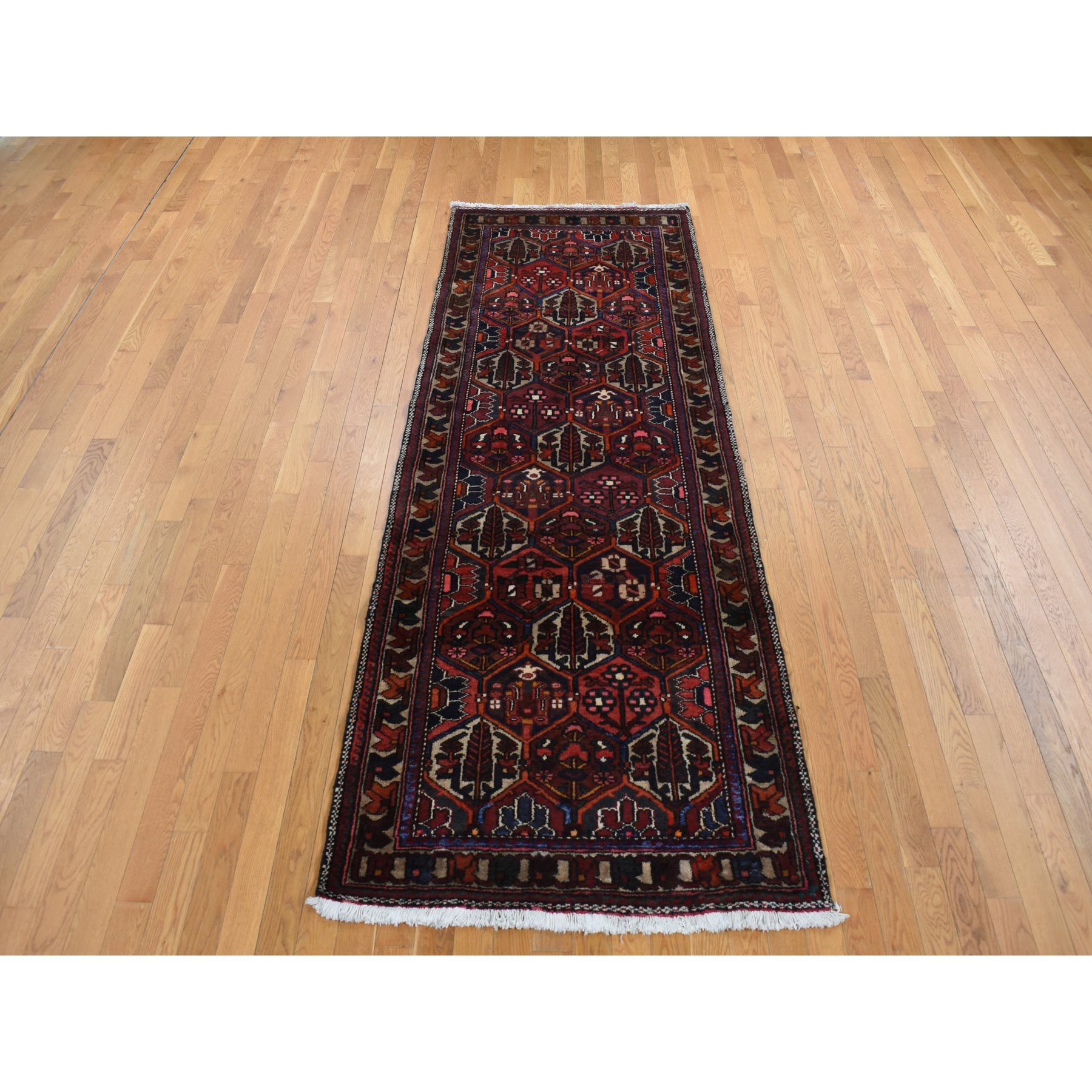 3’8″x9’8″ Sangria Red, Hand Knotted, Vintage Persian Bakhtiari Garden Design, Pure Wool, Wide Runner Oriental Rug Sh87529