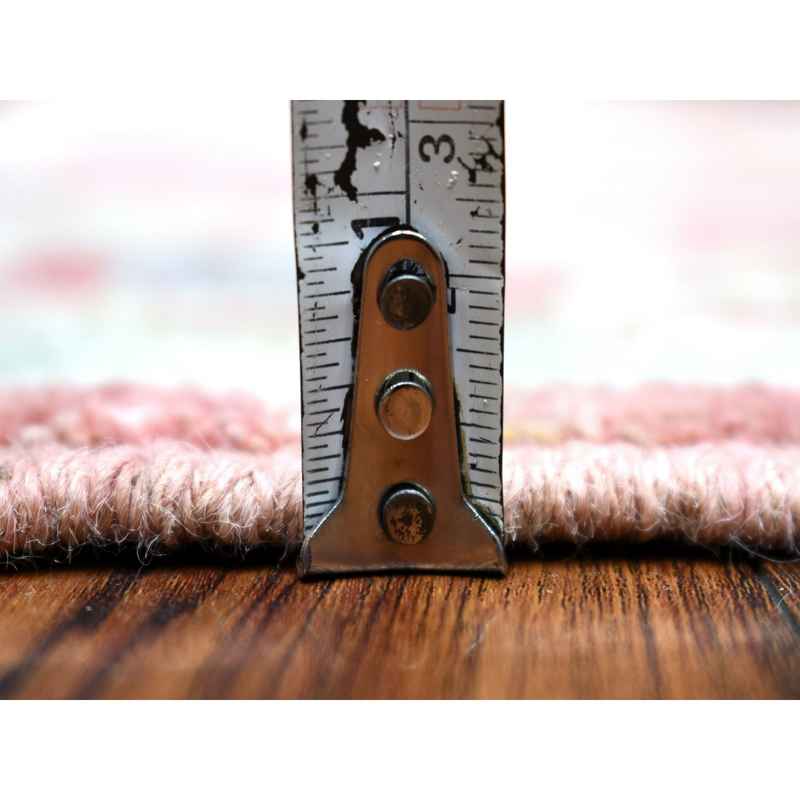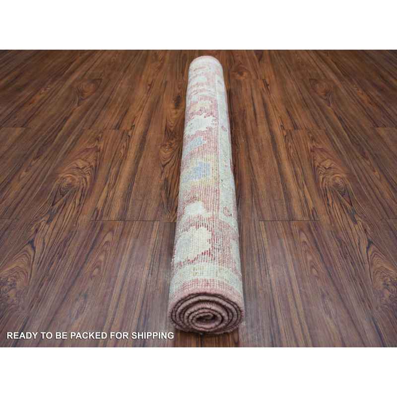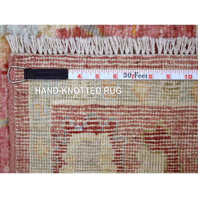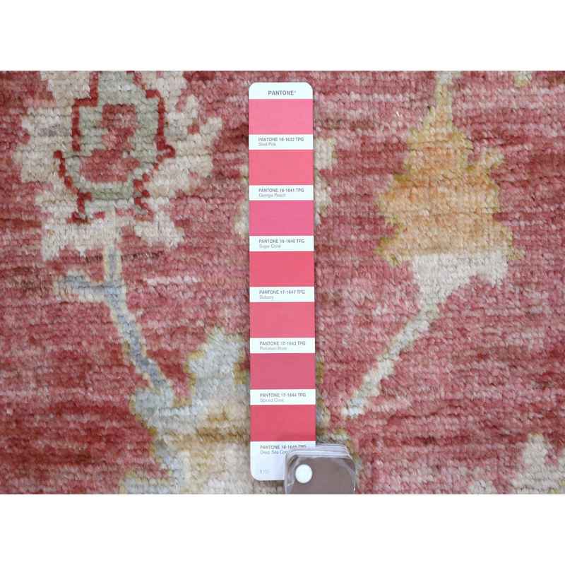 3’9″x6′ Coral Pink Hand Knotted, Afghan Angora Oushak with Colorful Leaf Design, Pure Wool Oriental Rug Sh70605