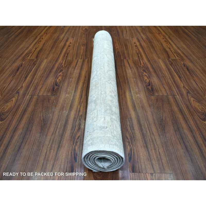 3’9″x6′ Ivory Pure Wool Natural Dyes Hand Knotted, Stone Wash Peshawar Oriental Rug Sh71566