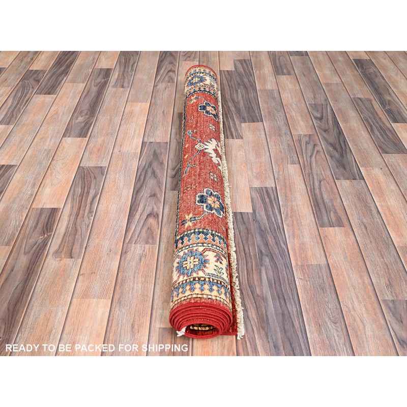 3’9″x6’3″ Chili Oil Red, Large Triple Medallion, All Wool, Densely Woven, Natural Dyes, Super Kazak Tribal Design, Hand Knotted Oriental Rug Sh86331