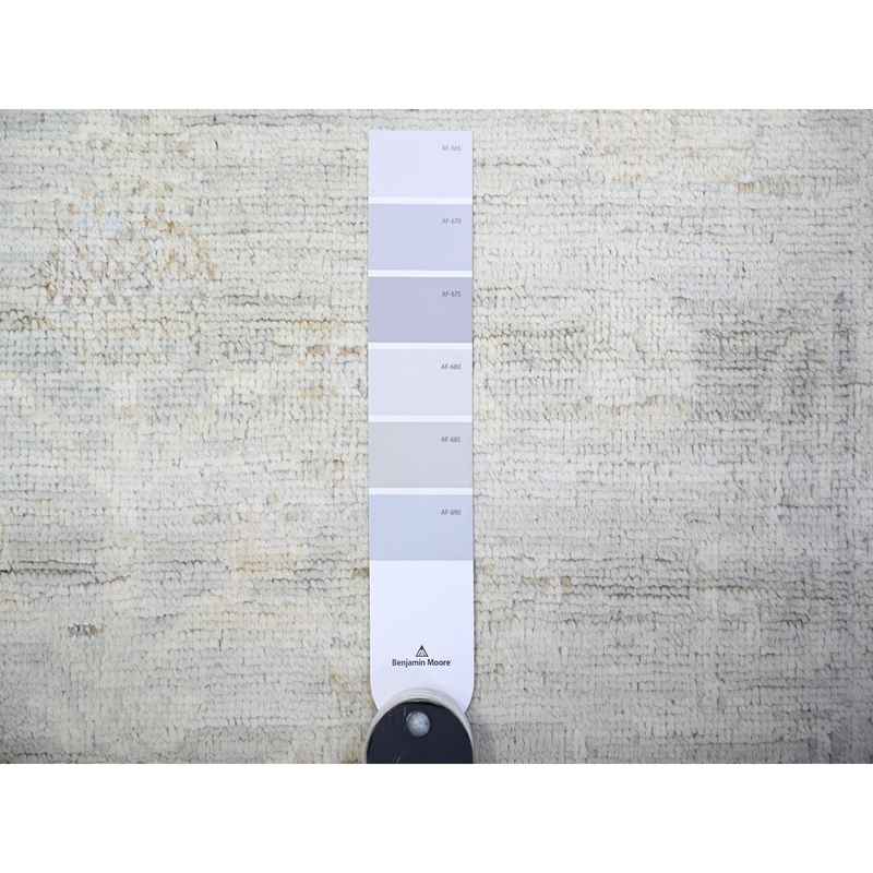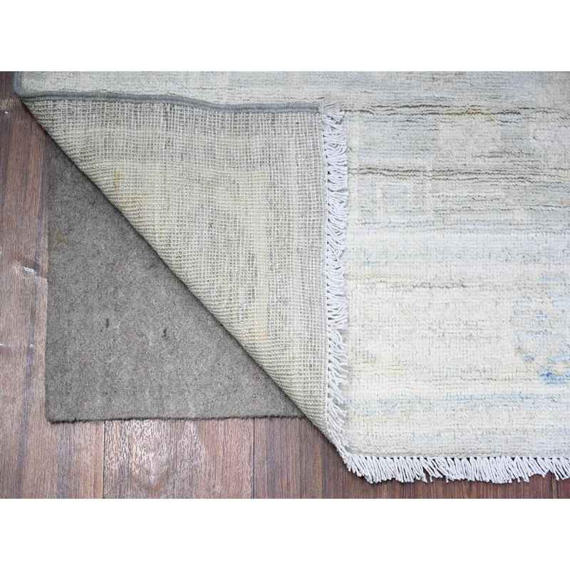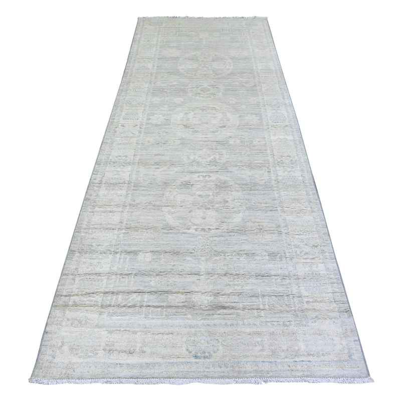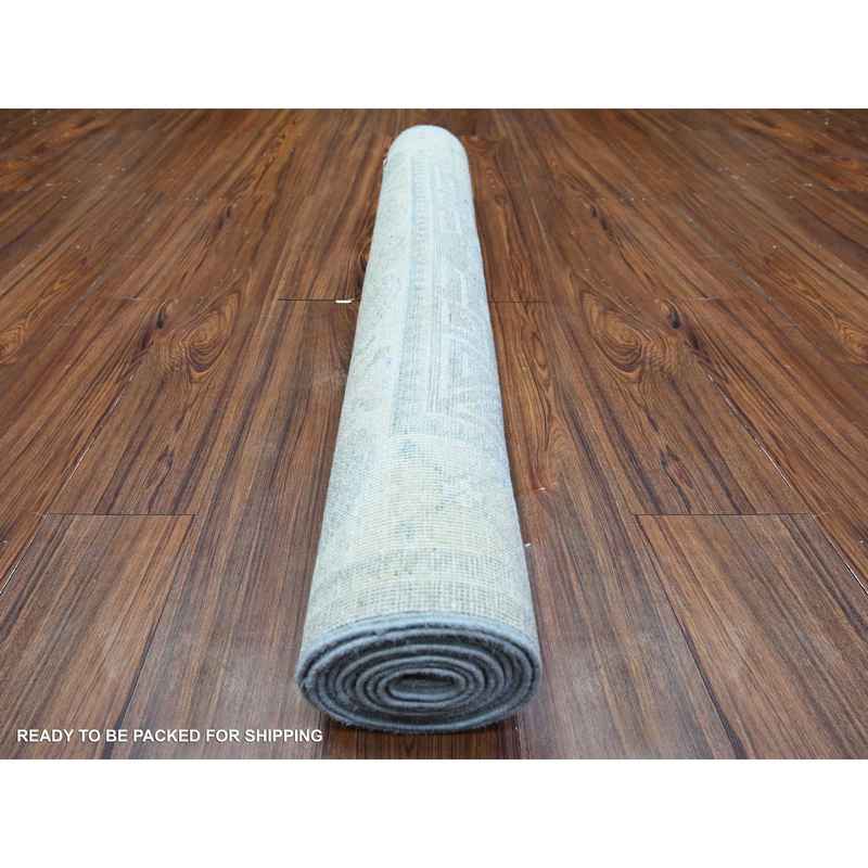 3’9″x9’9″ Cadet Gray, Washed Out Peshawar with Faded Colors, 100% Wool, Hand Knotted, Natural Dyes, Wide Runner Oriental Rug Sh74950