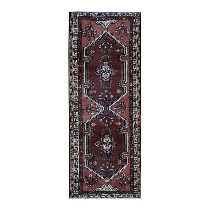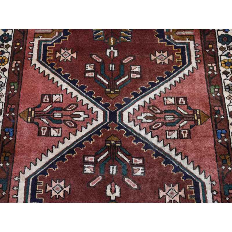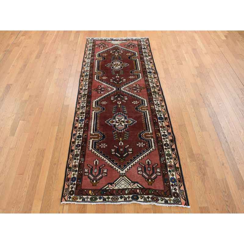 3’9″x9’9″ Redwood Red, Vintage Persian Malayer, Pure Wool, Hand Knotted, Wide Runner Oriental Rug Sh87469