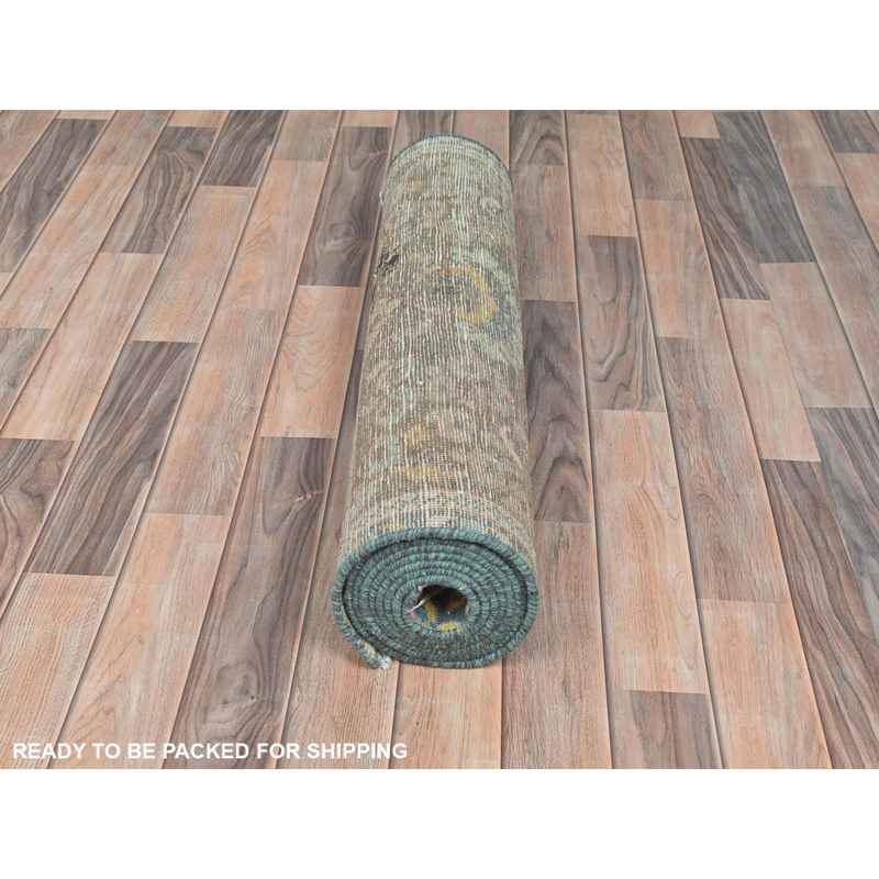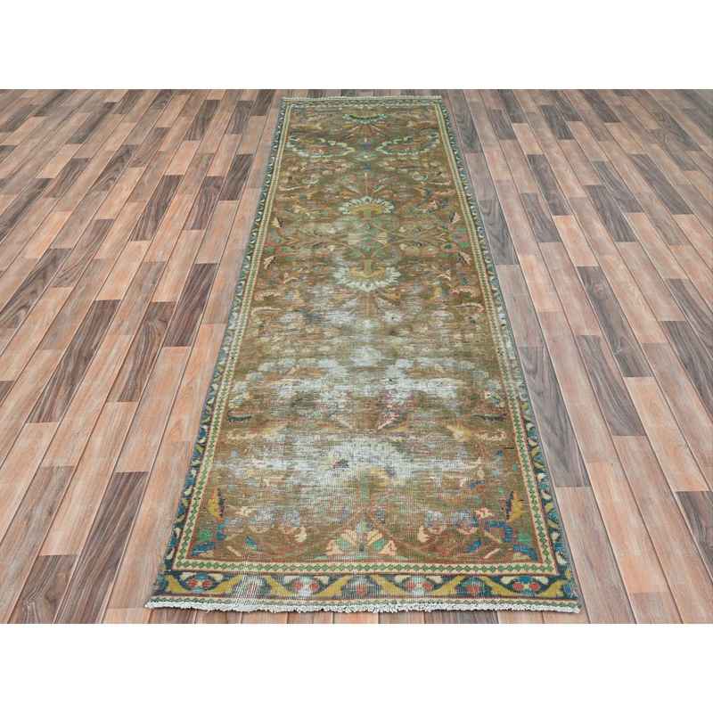 3’x10’1″ Taupe, Worn Down, Bohemian Vintage Persian Lilahan, Hand Knotted, Pure Wool, Professionally Cleaned Wide Runner Oriental Rug Sh81896
