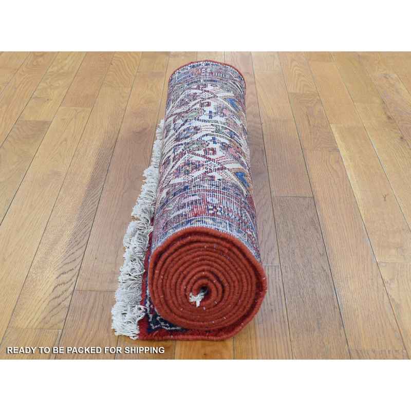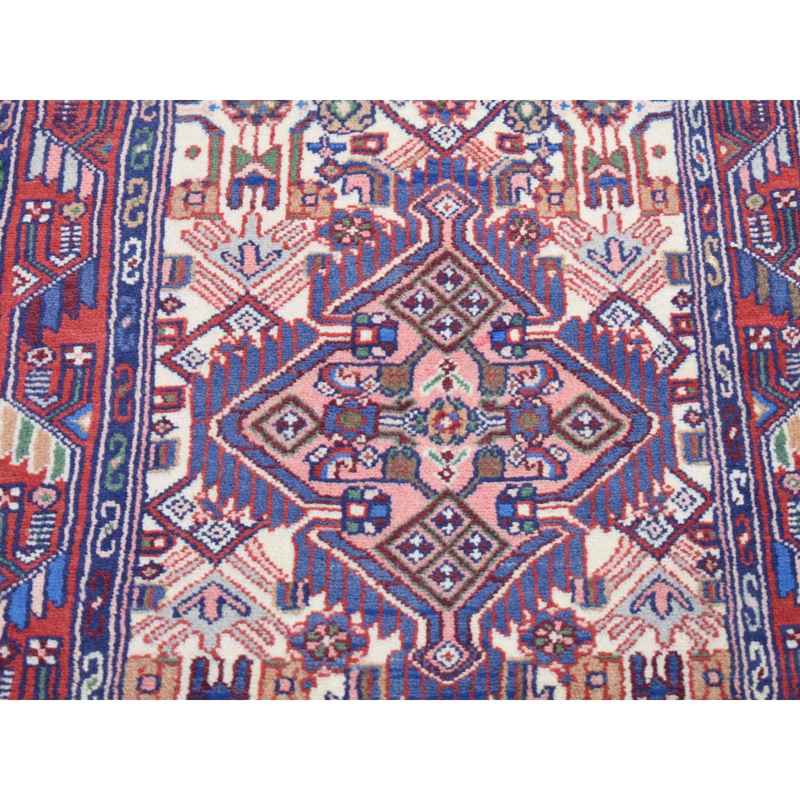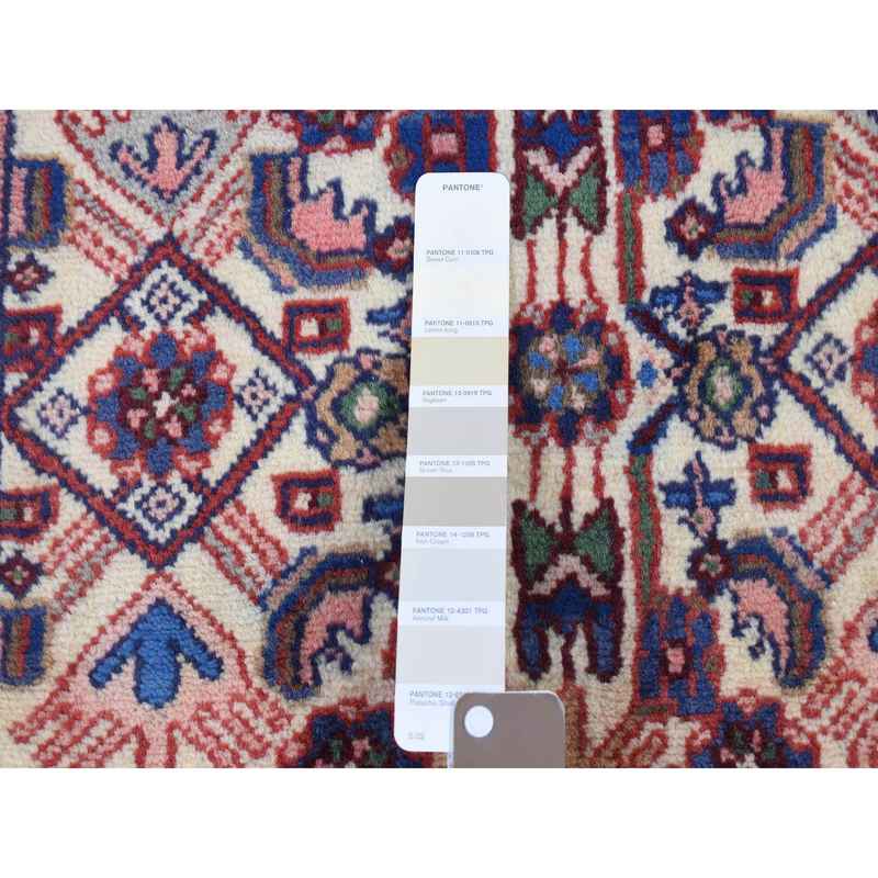 3’x10’3″ Ivory, Vintage Persian Hamadan, Full Pile, Excellent Condition, Fish Mahi Design, Clean, Hand Knotted, Wide Runner, Oriental Rug Sh80047