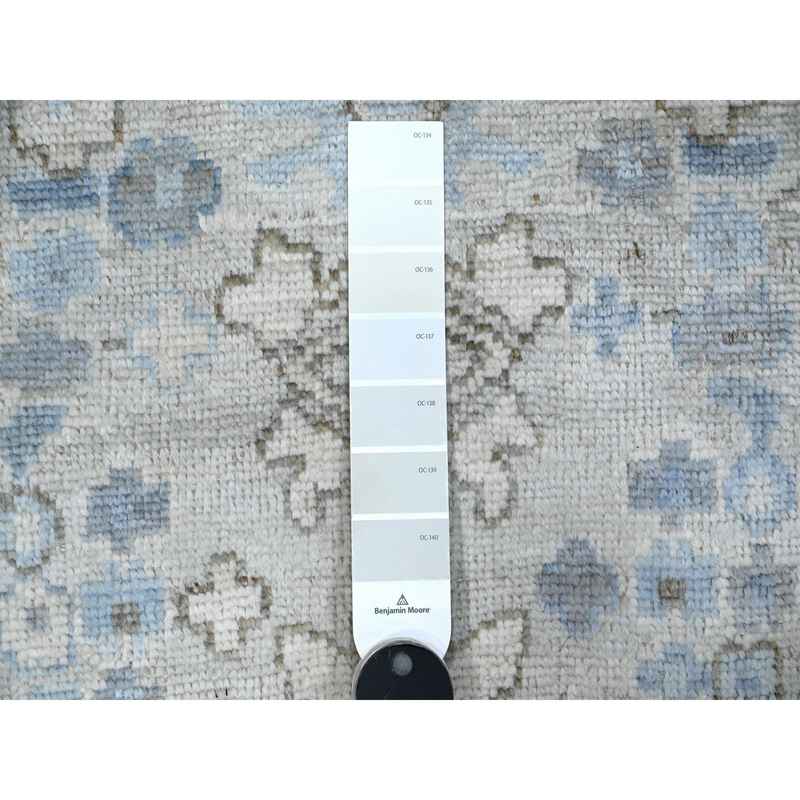 3’x19’5″ Powder Blue, Soft Afghan Wool Weft, Hand Knotted, Angora Oushak, Natural Dyes, Tribal All Over Flower And Leaf Design, XL Runner Oriental Rug Sh89137