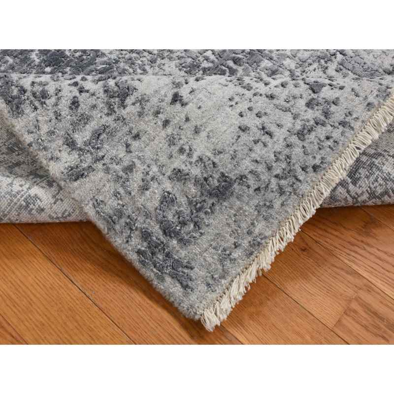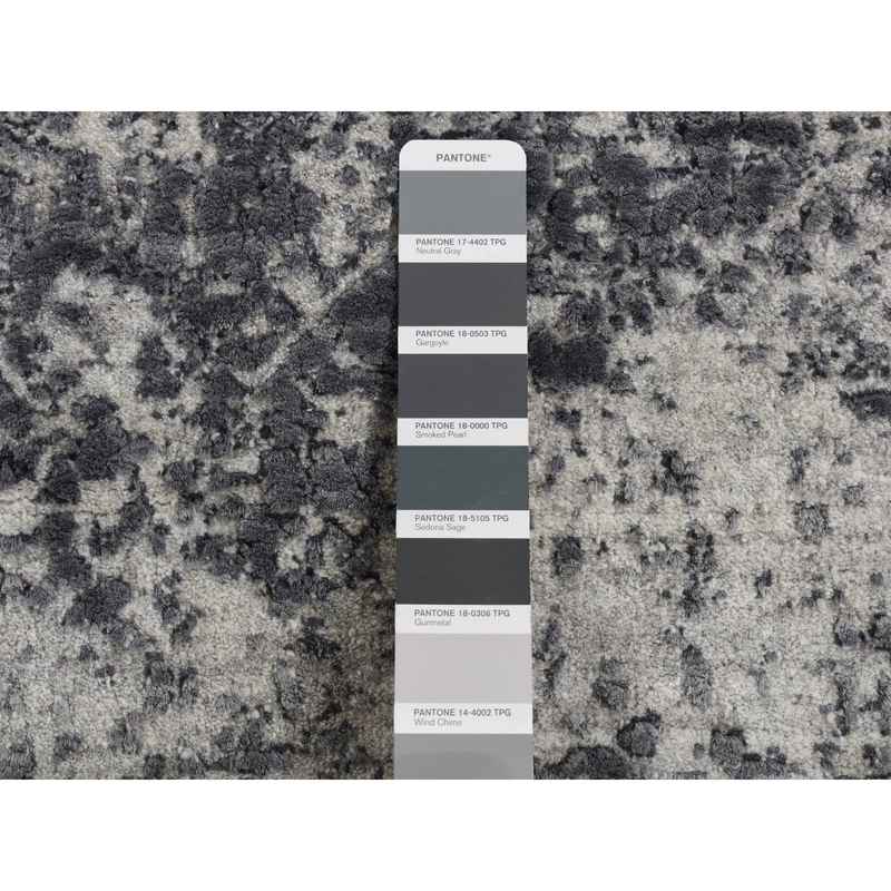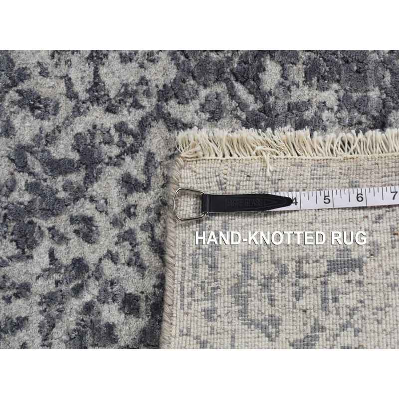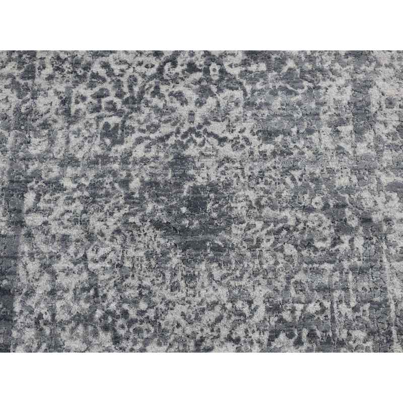 3’x4’10” Arsenic Gray, Broken and Erased Persian Design, Wool and Pure Silk, Hand Knotted, Oriental Rug Sh87605