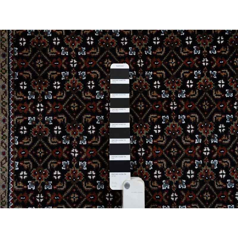 3’x5’2″ Rich Black Hand Knotted 175 KPSI Wool Herati with All Over Design Oriental Rug Sh64117