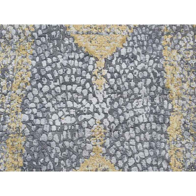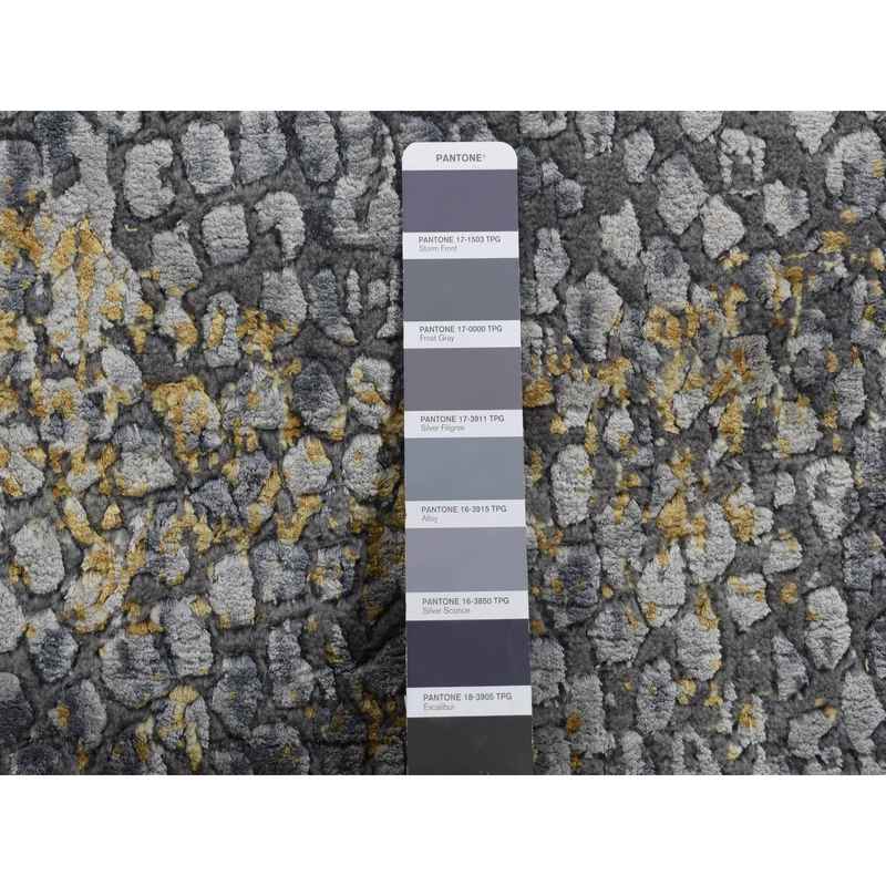 3’x8′ Charcoal Gray, Persian Design, Wool and Pure Silk, Hand Knotted, Wide Runner Oriental Rug Sh87627