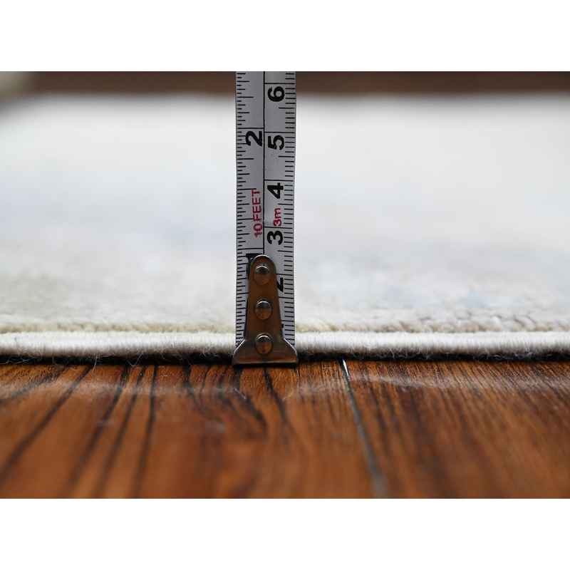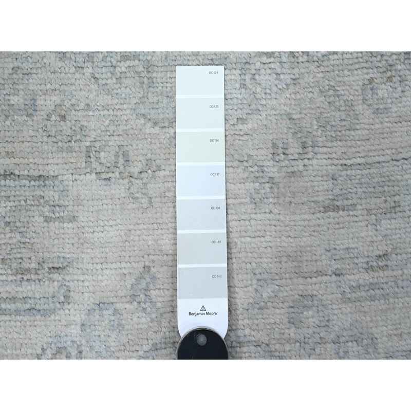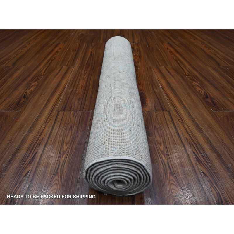 3’x9’4″ Alabaster White, Anatolian Inspired Tribal Geometric Elements, All Wool, Hand Knotted, Natural Dyes, Faded Out Runner Oriental Rug Sh89721