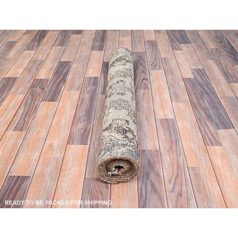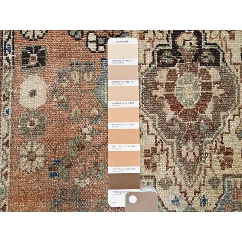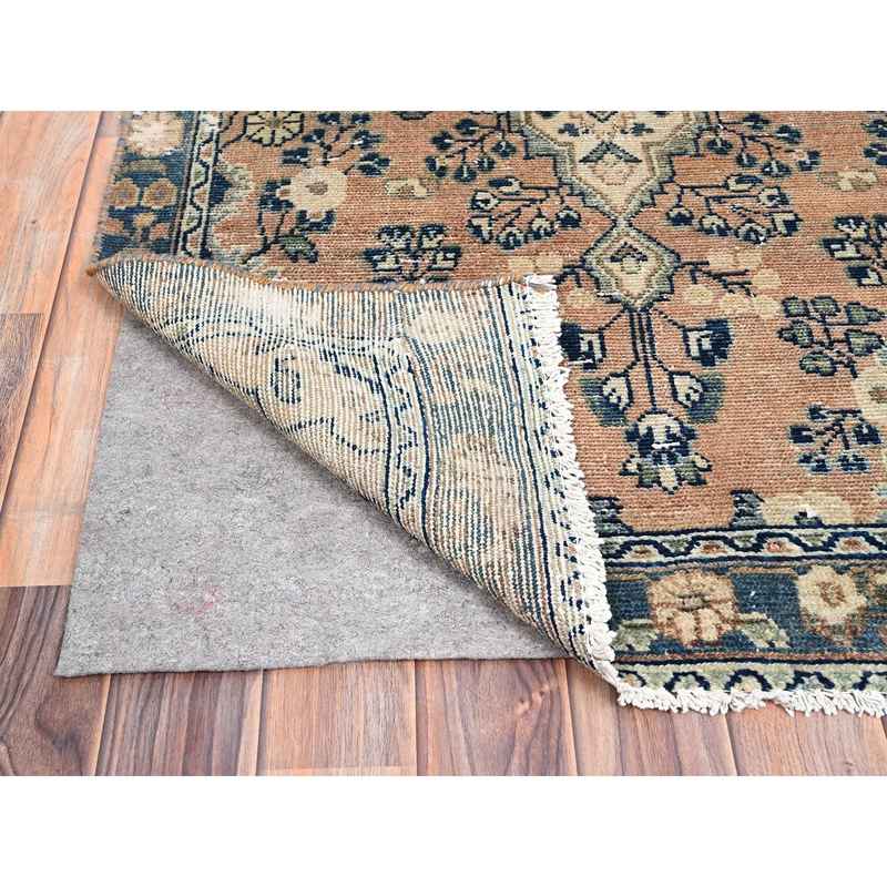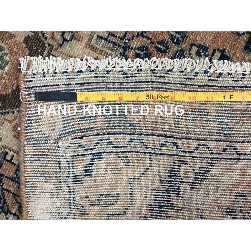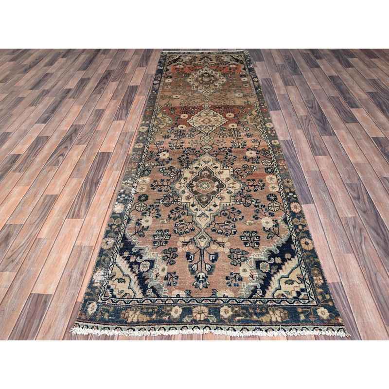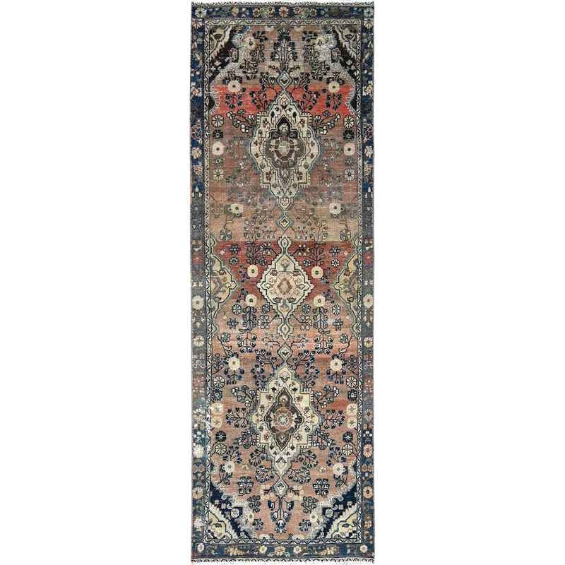 3’x9’5″ Sienna Brown, Vintage Persian Bibikabad With Distinct Abrash, Sheared Low Evenly Worn Soft Wool, Hand Knotted Cleaned, Sides and Ends Professionally Secured, Cropped Thin, Excellent Condition Wide Runner Oriental Rug Sh86017