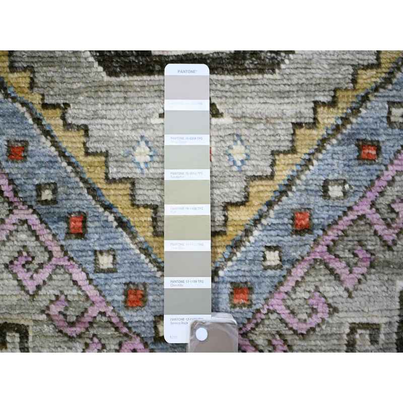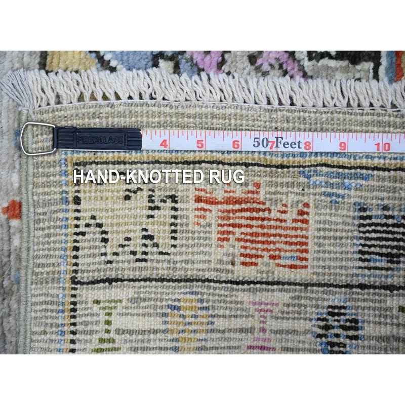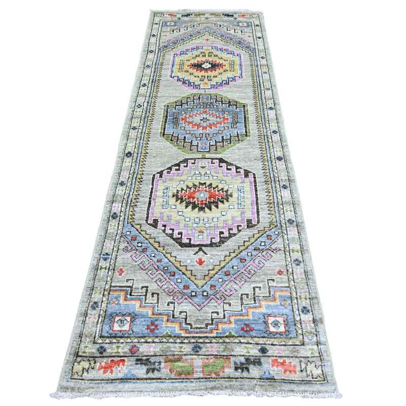3’x9’7″ Taupe, Vegetable Dyes, Soft Wool, Afghan Angora Oushak with Geometric Medallion Design, Hand Knotted, Runner Oriental Rug Sh73304