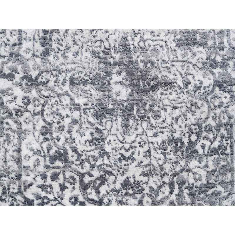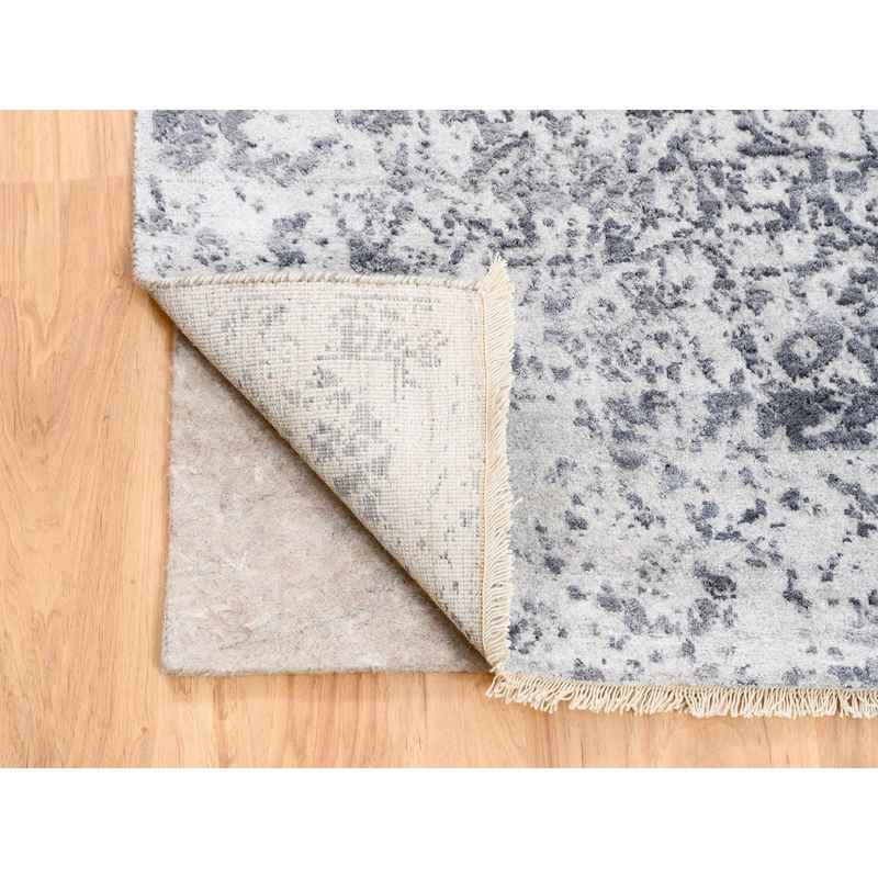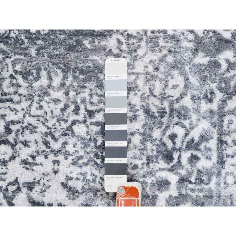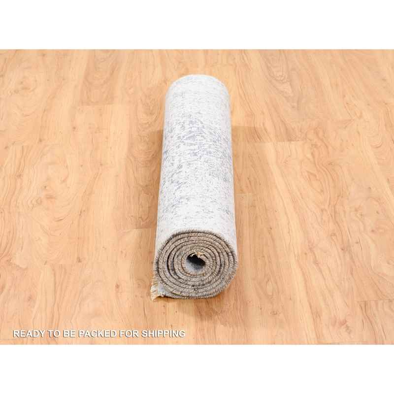 4’1″x10′ Broken Persian Design Wool And Pure Silk Grey Hand Knotted Oriental Wide Gallery Runner Rug Sh62355