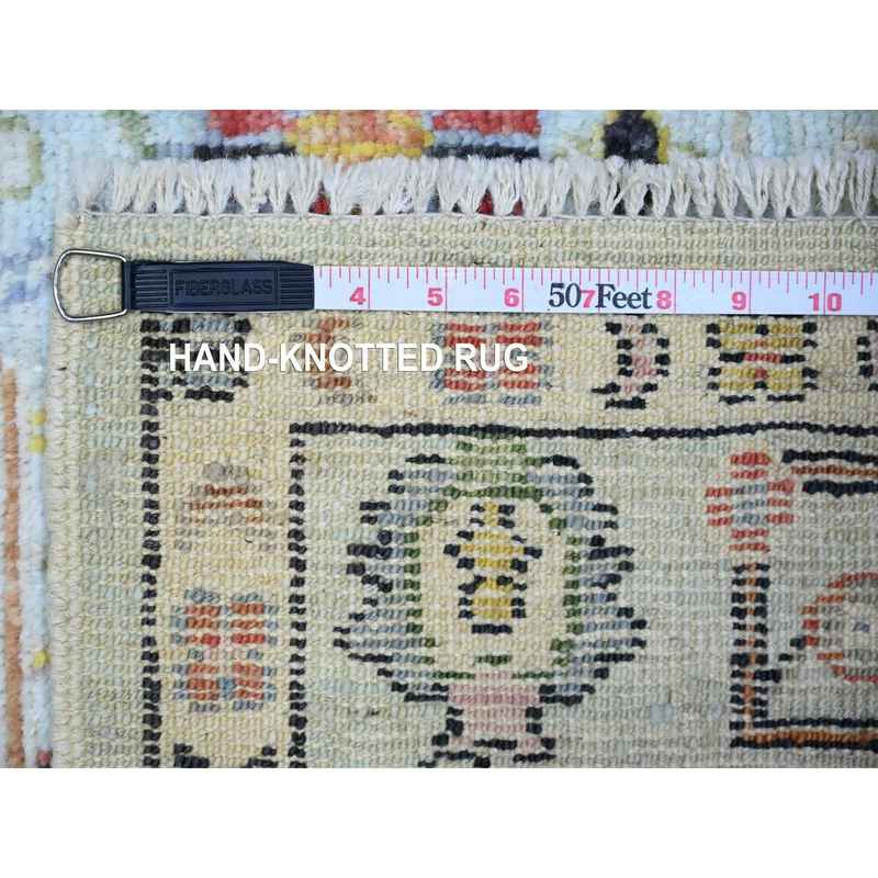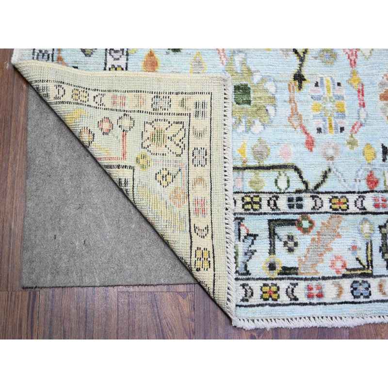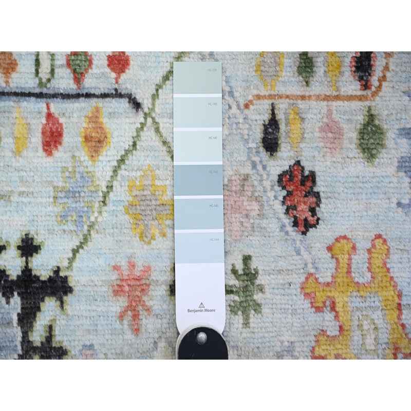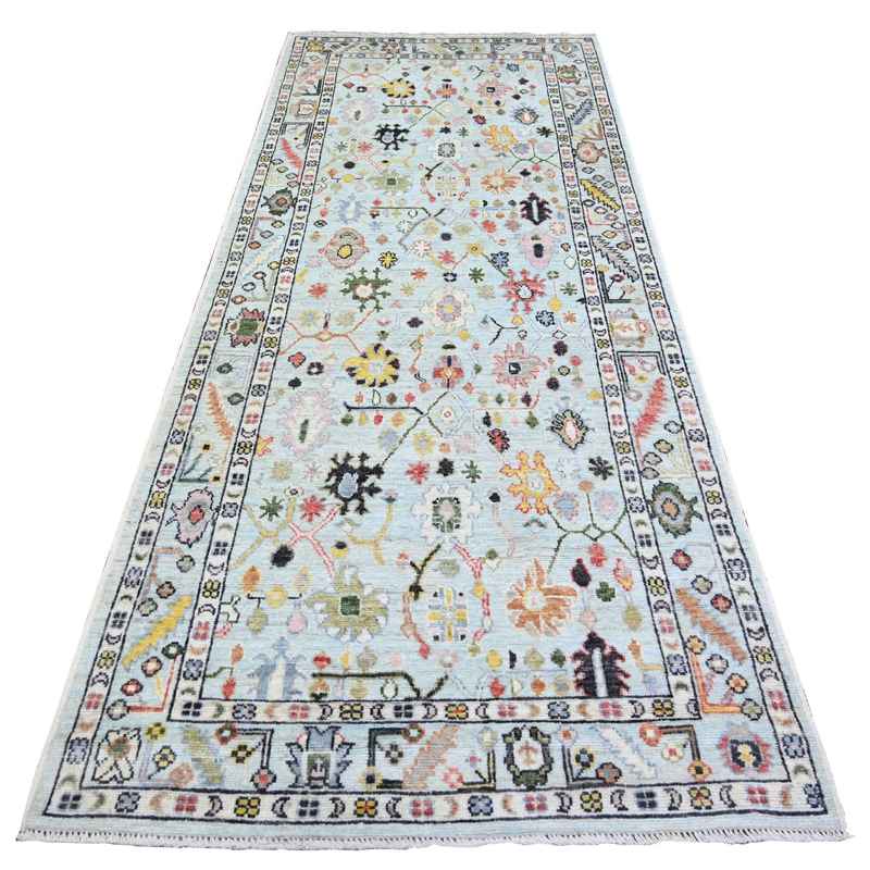 4’1″x10′ Sky Blue, Natural Dyes Afghan Angora Oushak with Colorful Pattern, 100% Wool Hand Knotted, Runner Oriental Rug Sh74164