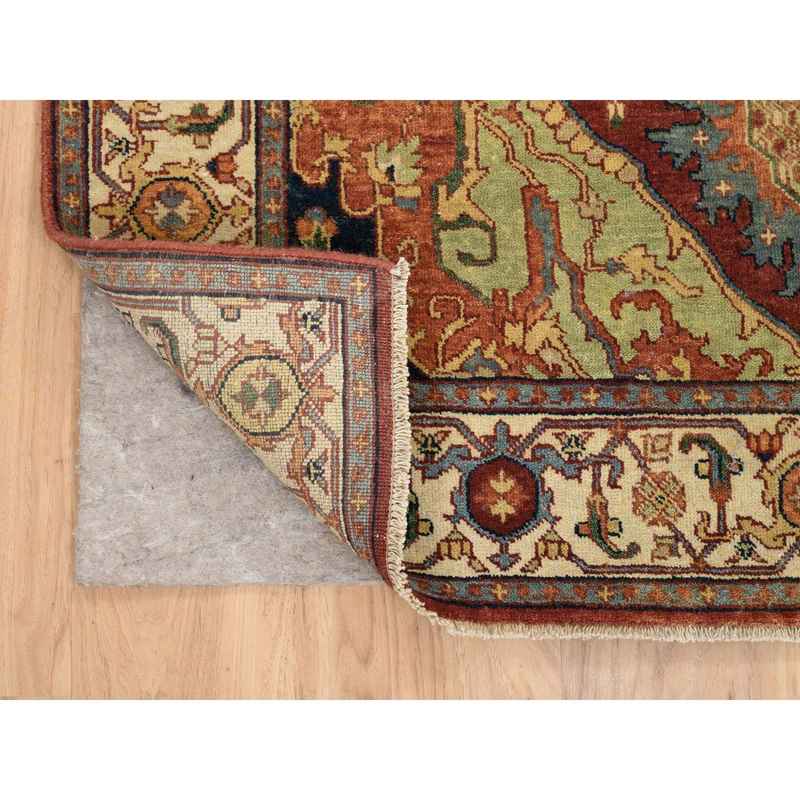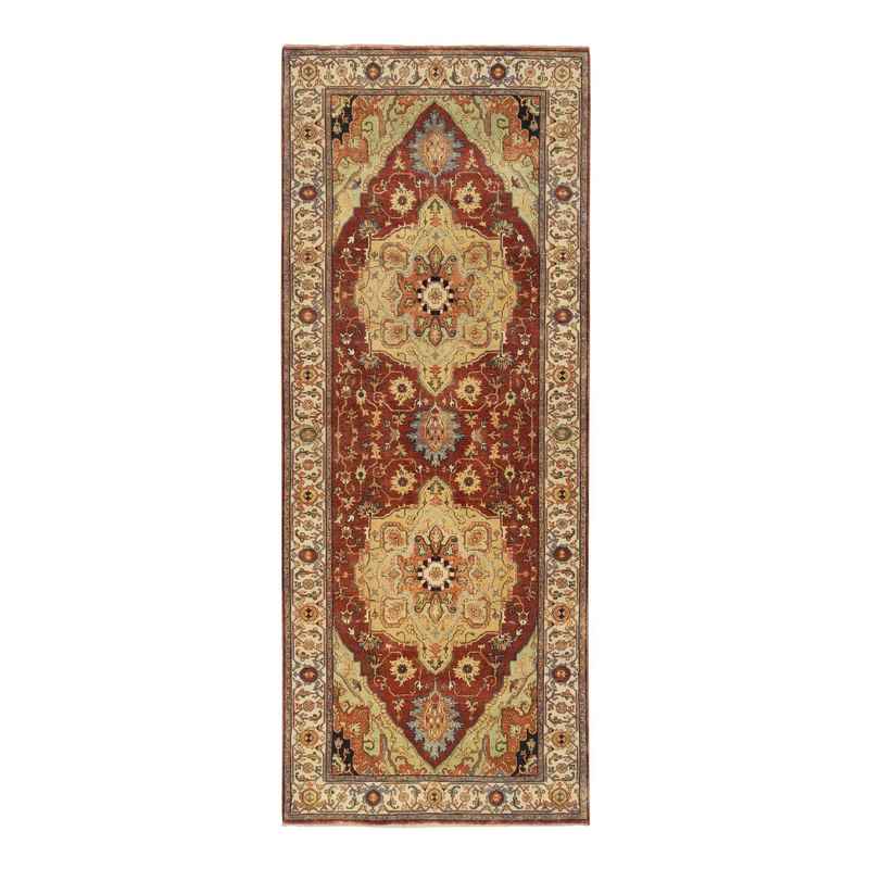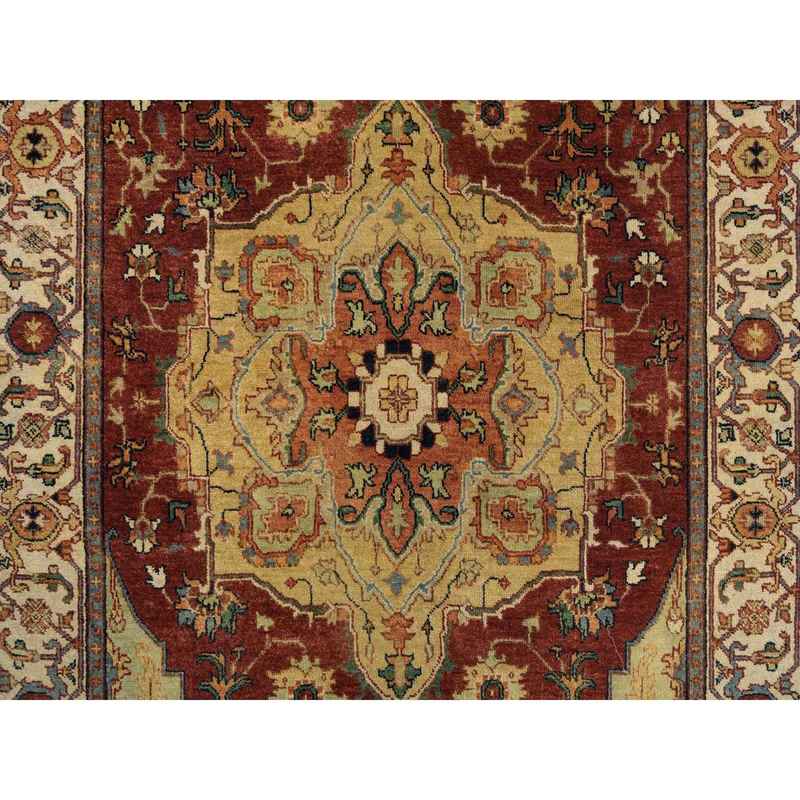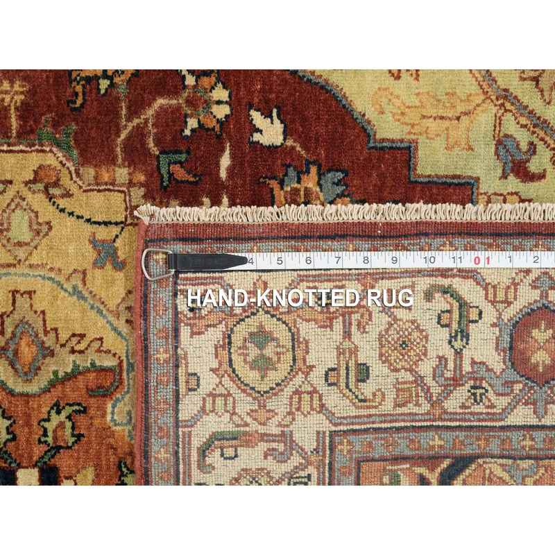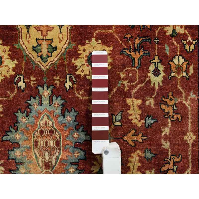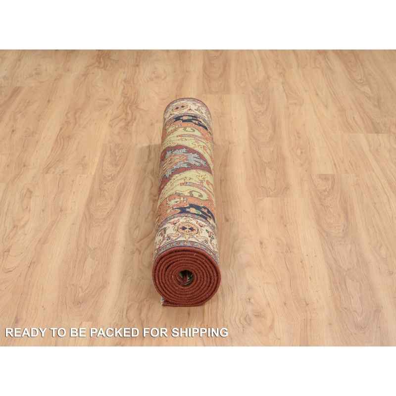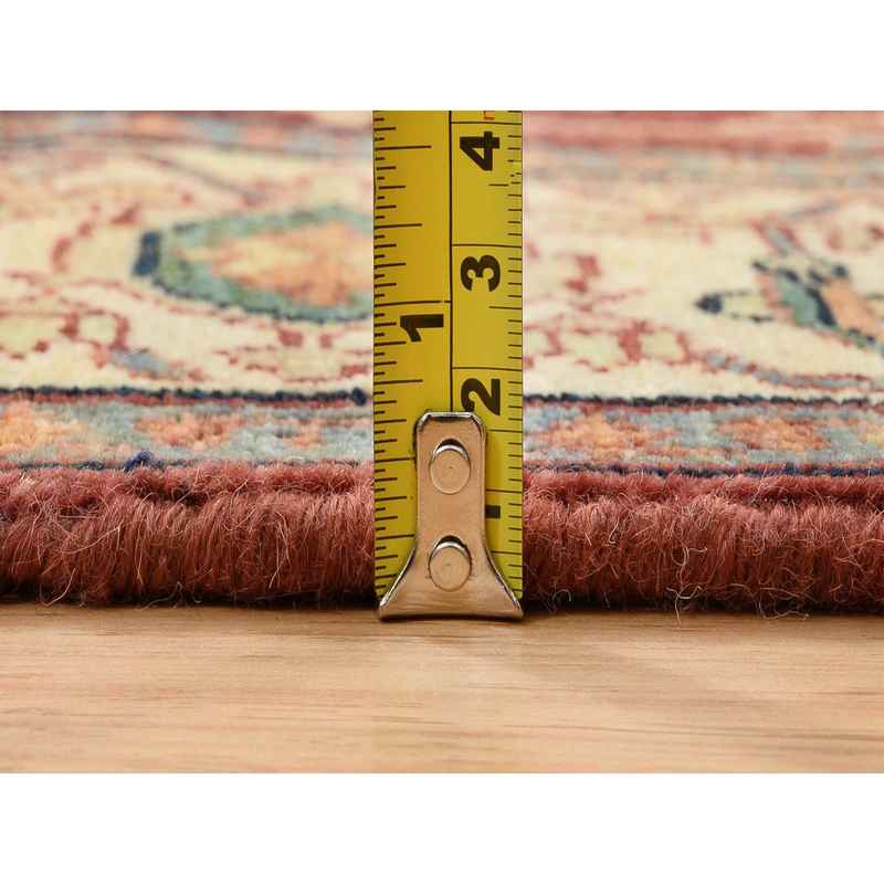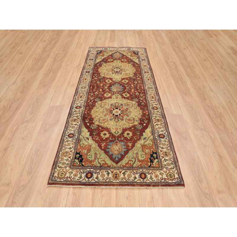 4’1″x10’3″ Terracotta Red, Natural Dyes Hand Spun Wool, Hand Knotted Antiqued Fine Heriz Re-Creation Densely Woven, Wide Runner Oriental Rug Sh64957