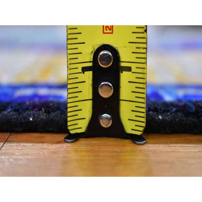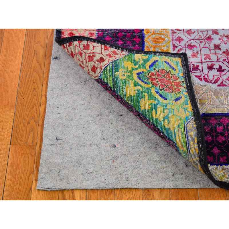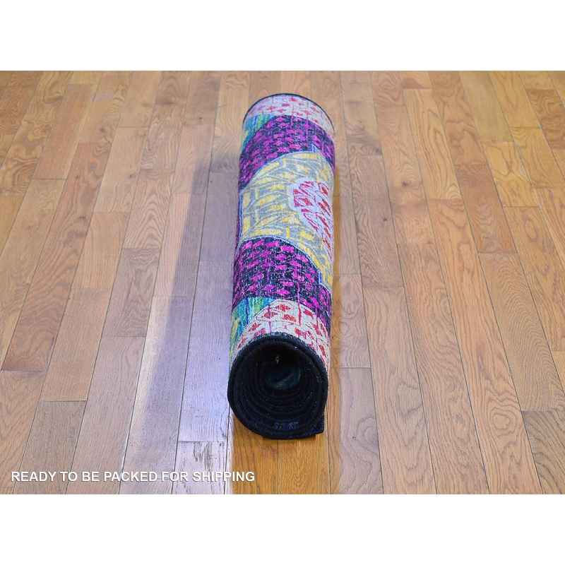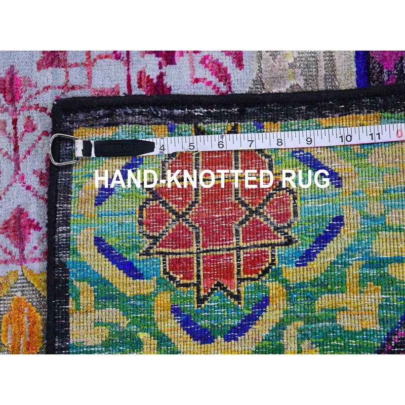 4’1″x10’4″ Colorful Sari Silk with Textured Wool Mamluk Design Hand Knotted Oriental Rug Sh66494