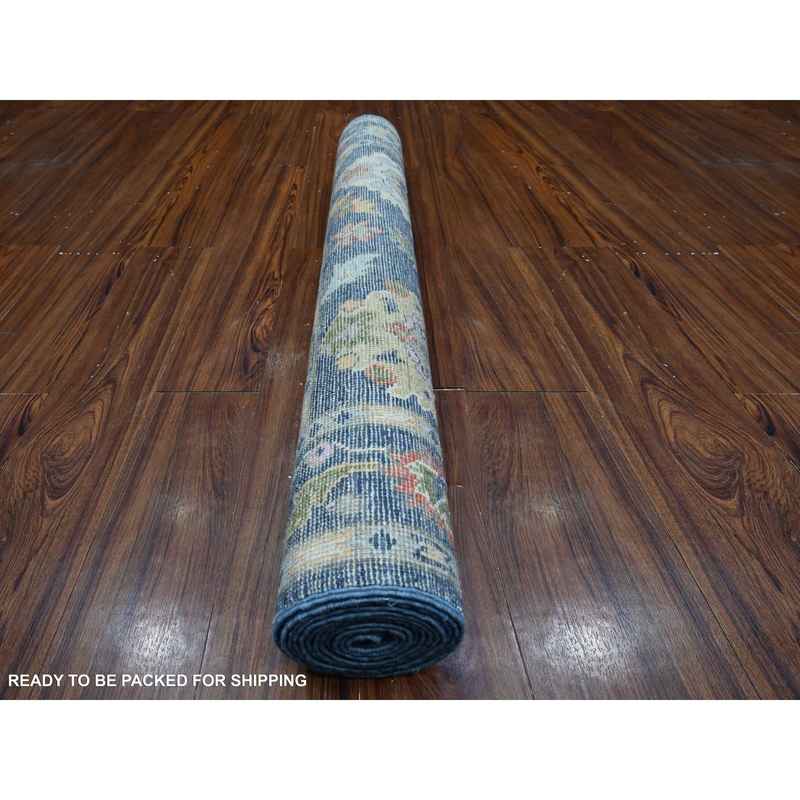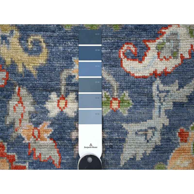4’1″x11’9″ Denim Blue, Wool Weft, Vegetable Dyes, Hand Knotted, Tribal Flower And Leaf All Over Design, Afghan Angora Oushak, Runner Wide Gallery Oriental Rug Sh89029