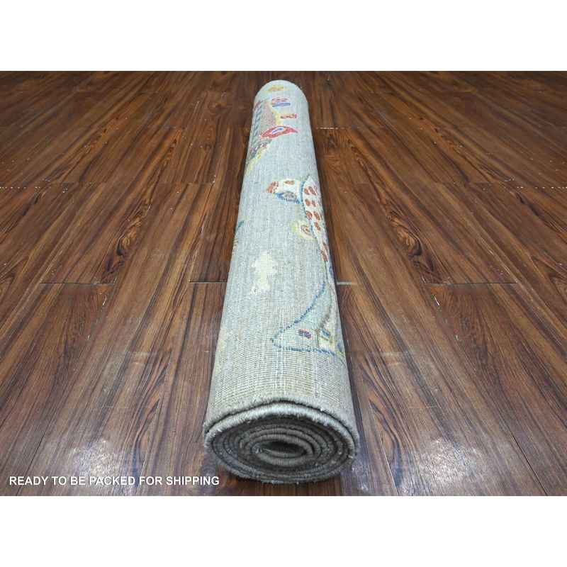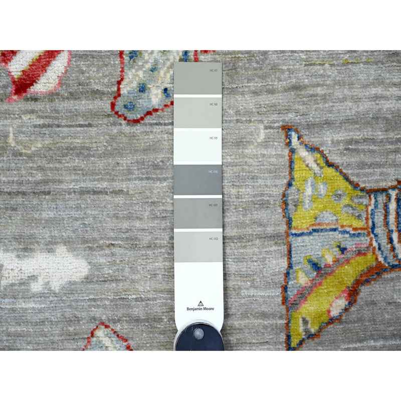 4’1″x12′ Rocky Gray, Hand Knotted Extra Soft Wool, Afghan Peshawar Oceanic Colorful Fish Design, Natural Dyes, Denser Weave Oriental Rug Sh89660