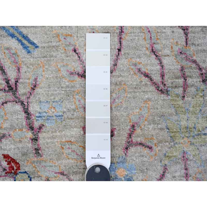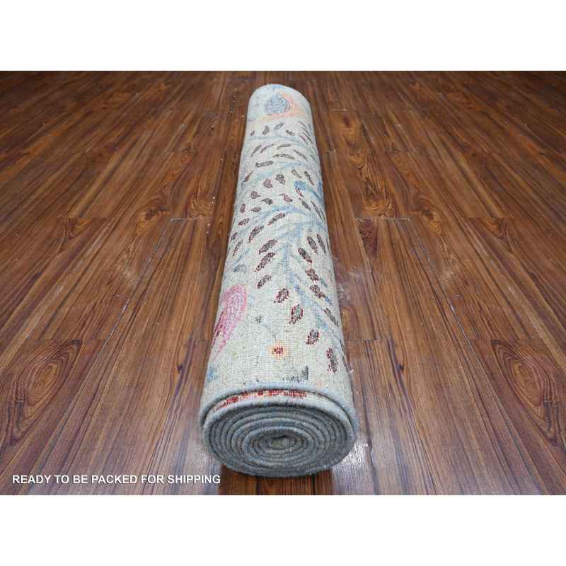 4’1″x16′ Tint Gray, Hand Knotted Afghan Peshawar with Birds of Paradise, Natural Dyes Pure Wool, Wide Runner Oriental Rug Sh88718