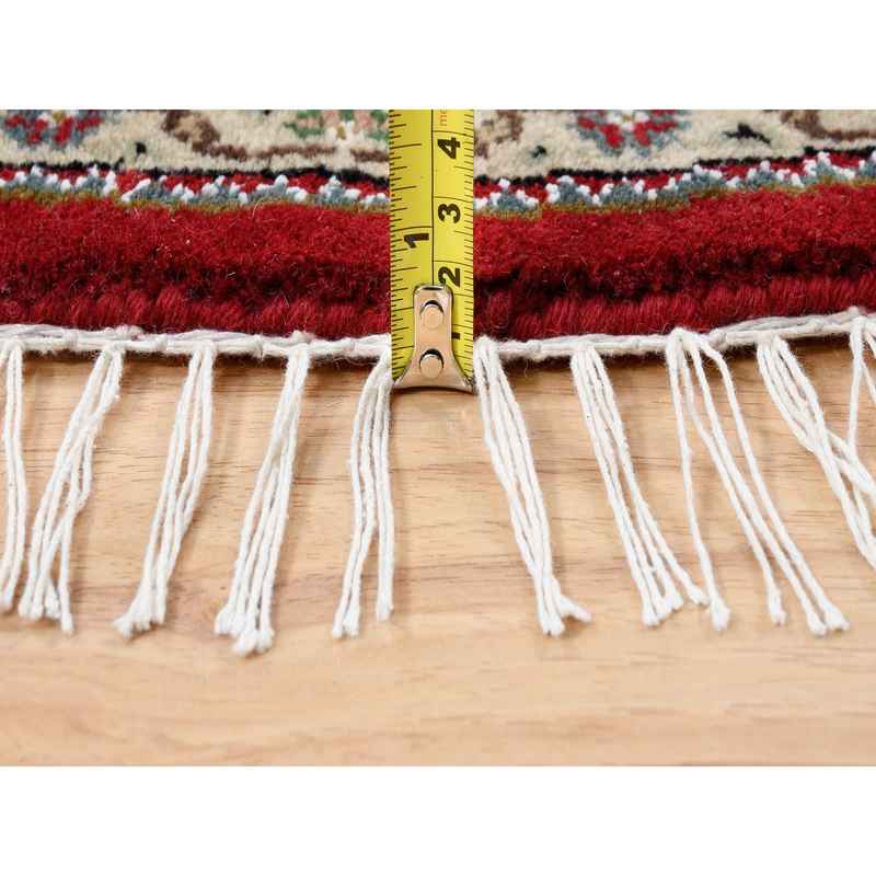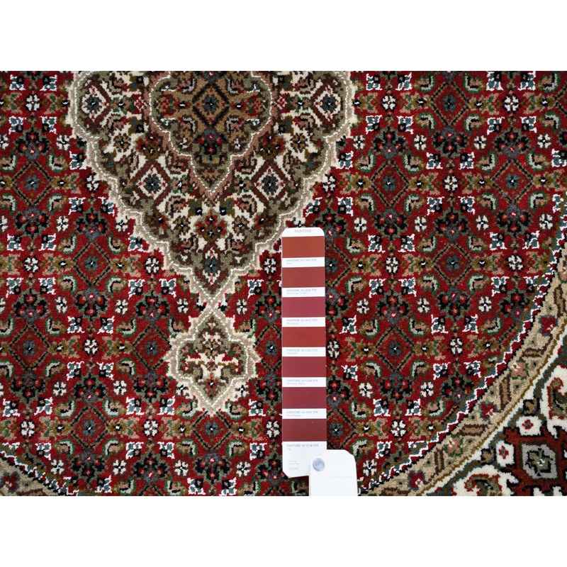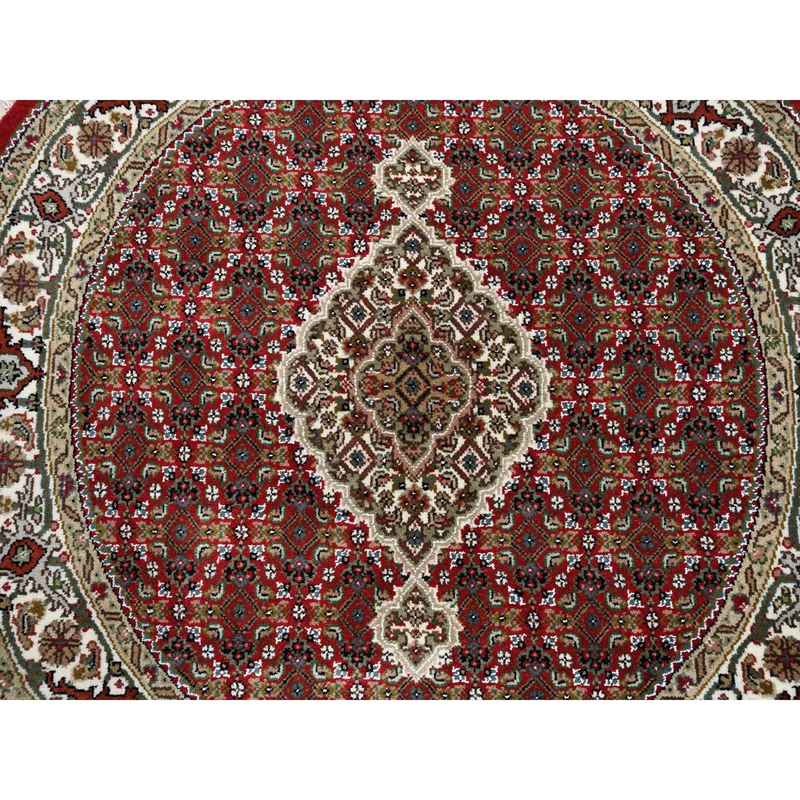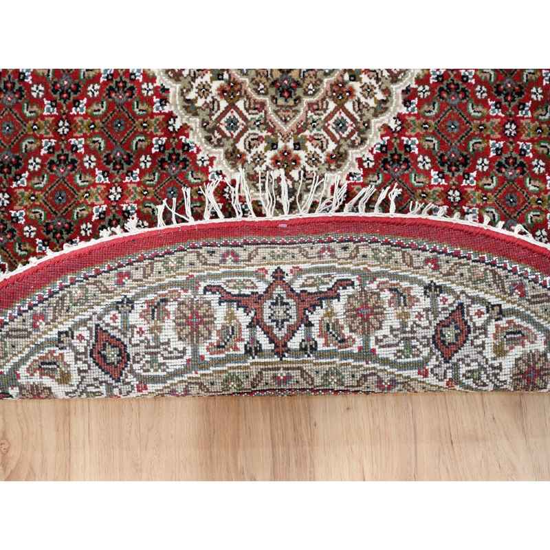 4’1″x4’1″ Red Hand Knotted Round Wool Tabriz Mahi Fish Medallion Design Oriental Rug Sh62442