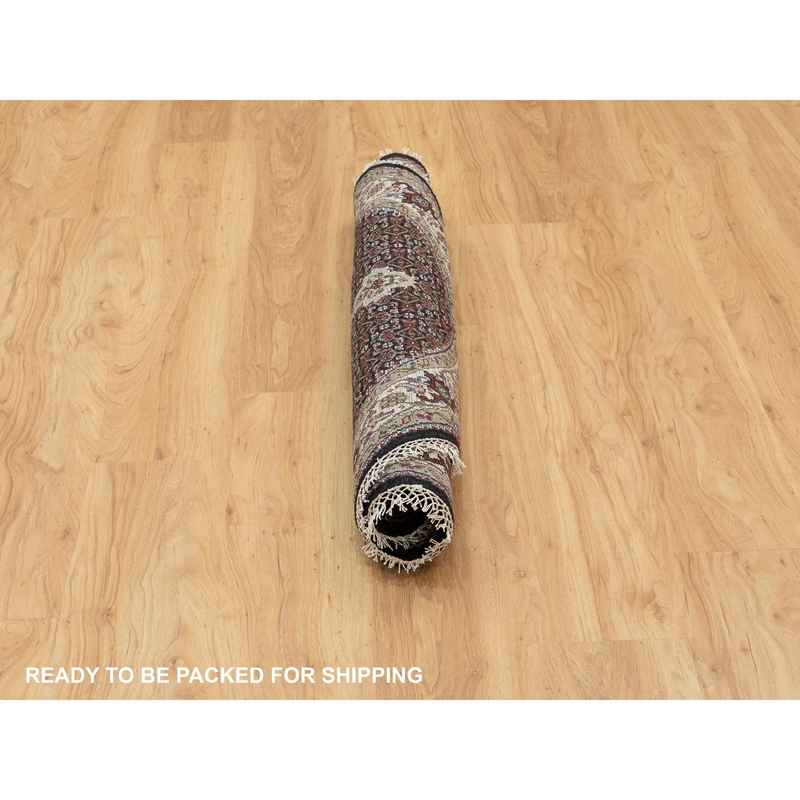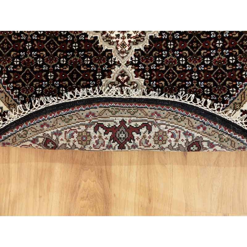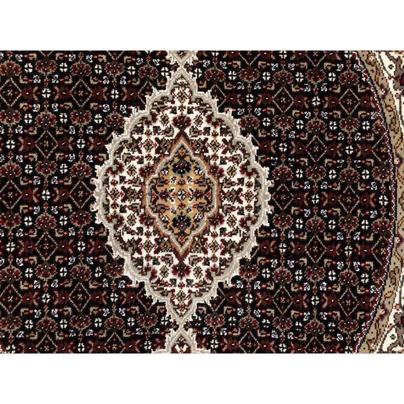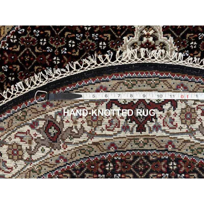 4’1″x4’1″ Rich Black, 250 KPSI Wool Tabriz Mahi with Fish Medallion Design, Hand Knotted, Round Oriental Rug Sh58685