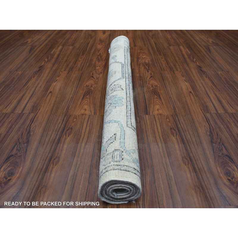 4’1″x5’10” Beige, Afghan Angora Oushak with All Over Design, Hand Knotted, Pure Wool, Natural Dyes Oriental Rug Sh71464