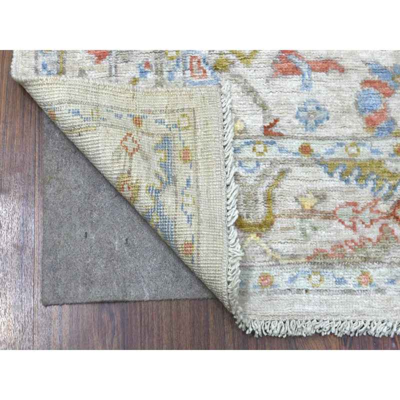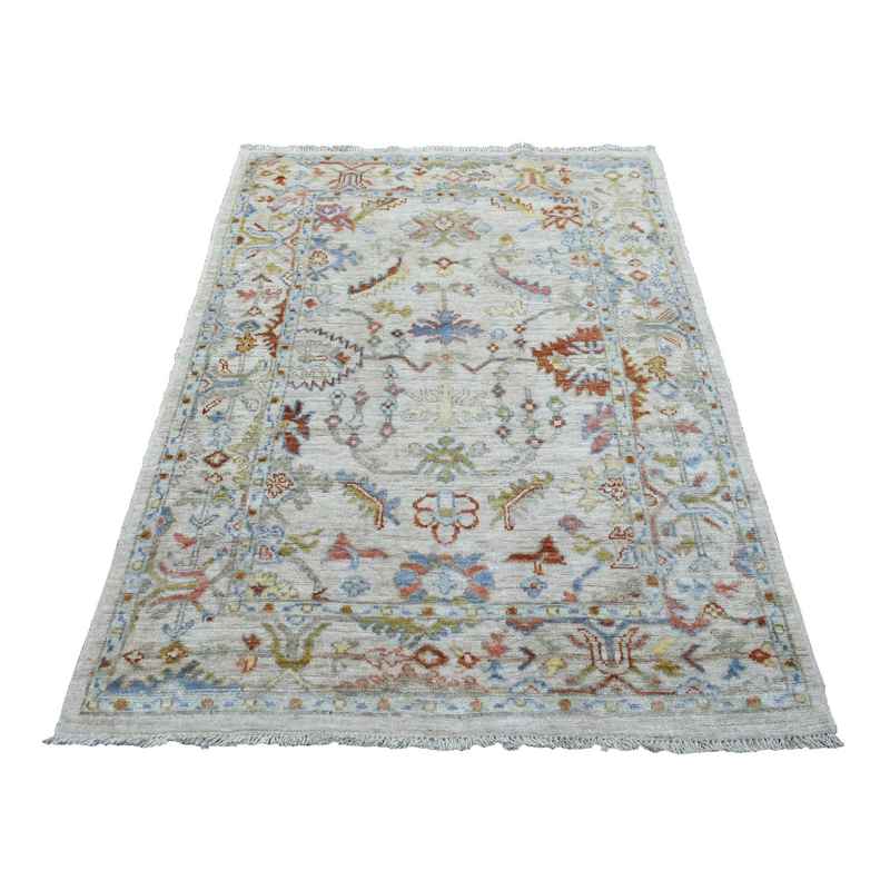 4’1″x5’10” Beige Angora Ushak with Pop of Colors Soft and Pliable Wool Hand Knotted Oriental Rug Sh69762