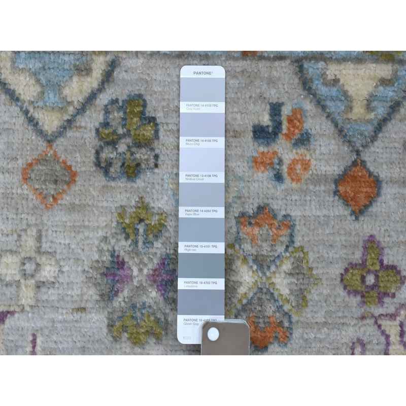 4’1″x5’10” Soft Velvety Wool Hand Knotted Colorful Gray Angora Oushak Oriental Rug Sh56109