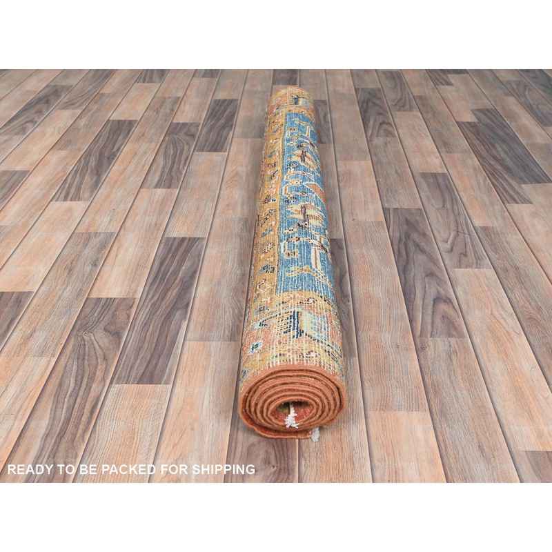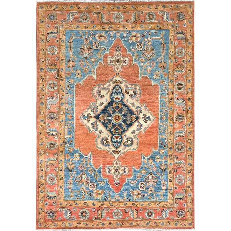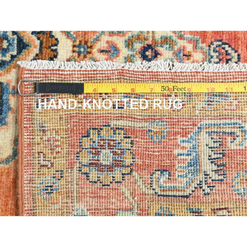 4’1″x5’9″ Brick Red, Afghan Peshawar with Serapi Heriz Design, Natural Dyes Densely Woven, Soft Wool Hand Knotted, Oriental Rug Sh82502