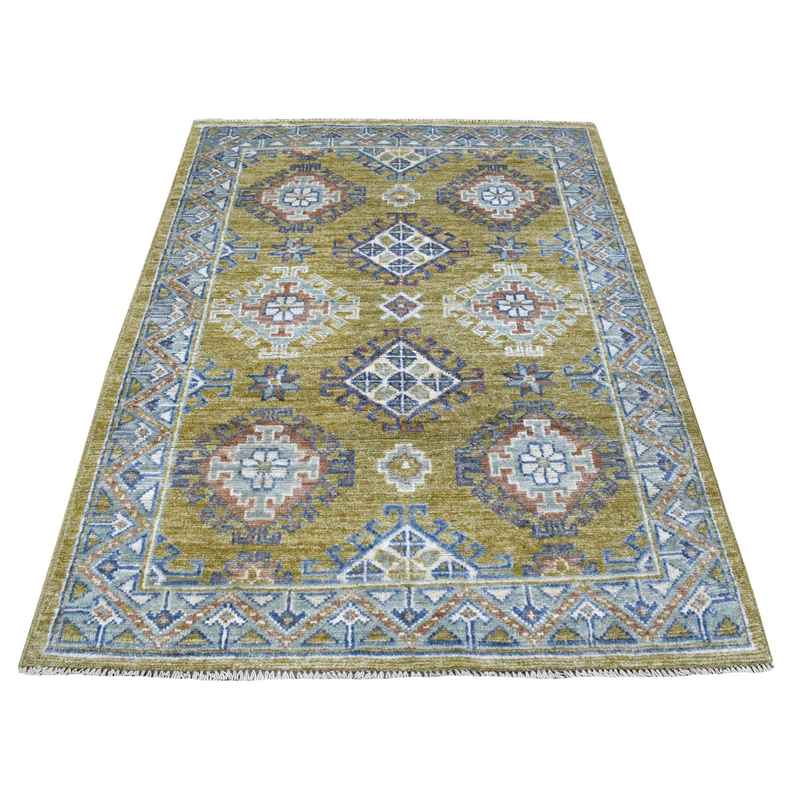 4’1″x6′ Anatolian Design With Glimmery Wool Mustard Color Hand Knotted Oriental Rug Sh55955