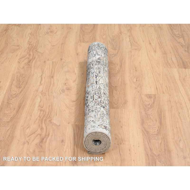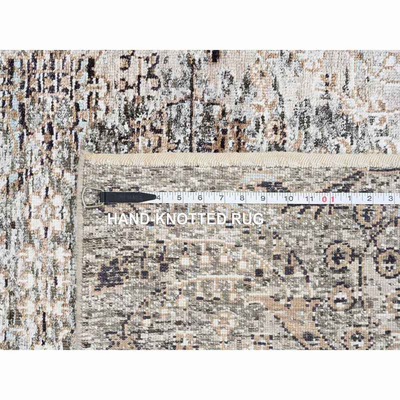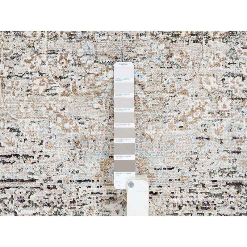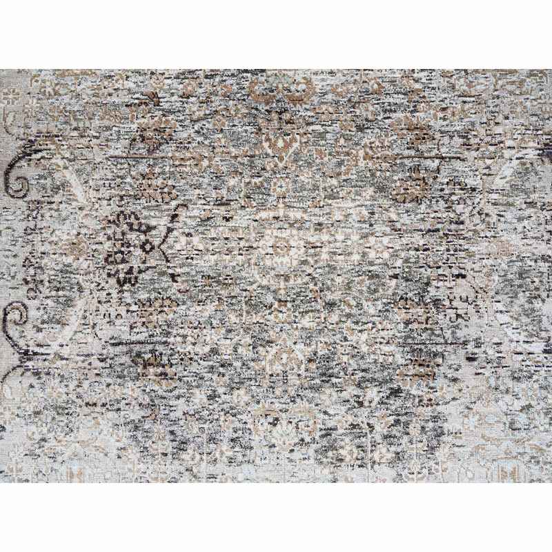 4’1″x6′ Gray, Hand Knotted, Transitional Persian Influence Erased Medallion Design, Silk with Textured Wool, Oriental Rug Sh64679