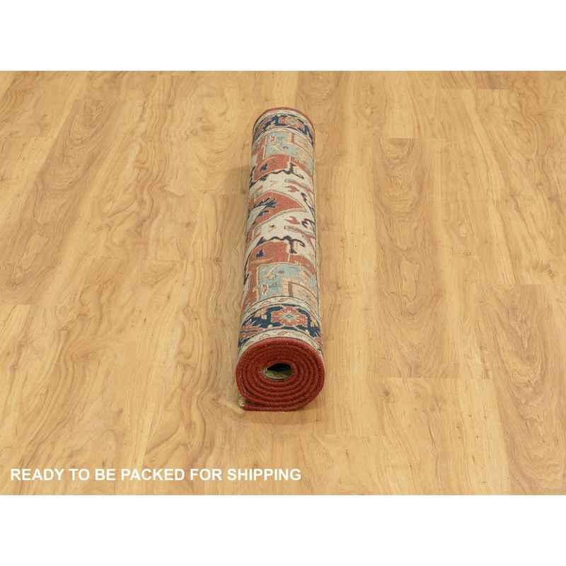 4’1″x6′ Hand Knotted Red Antiqued Heriz Re-Creation Geometric Design Pure Wool Oriental Rug Sh62021