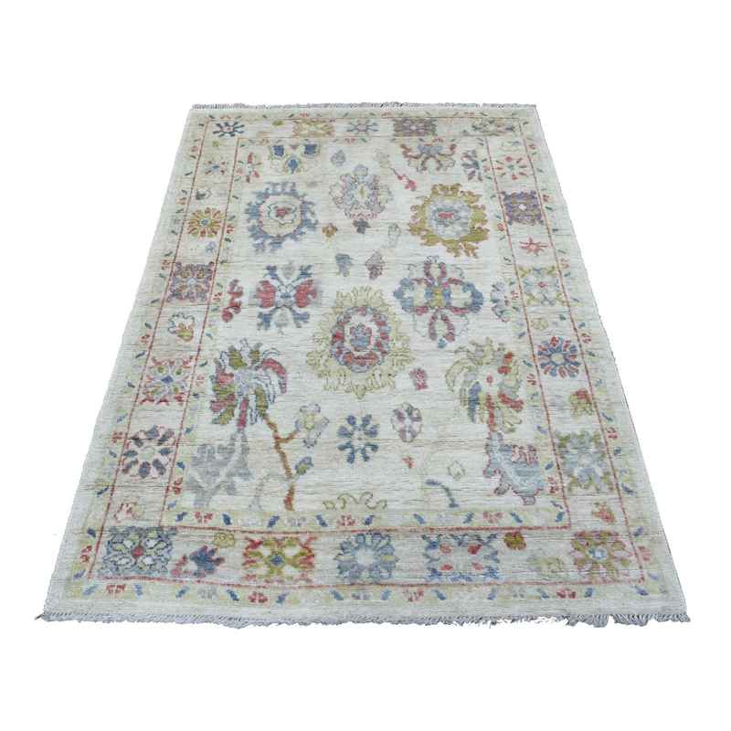 4’1″x6′ Organic Wool Hand Knotted Ivory Angora Ushak With A Beautiful, Color Pattern Oriental Rug Sh69814